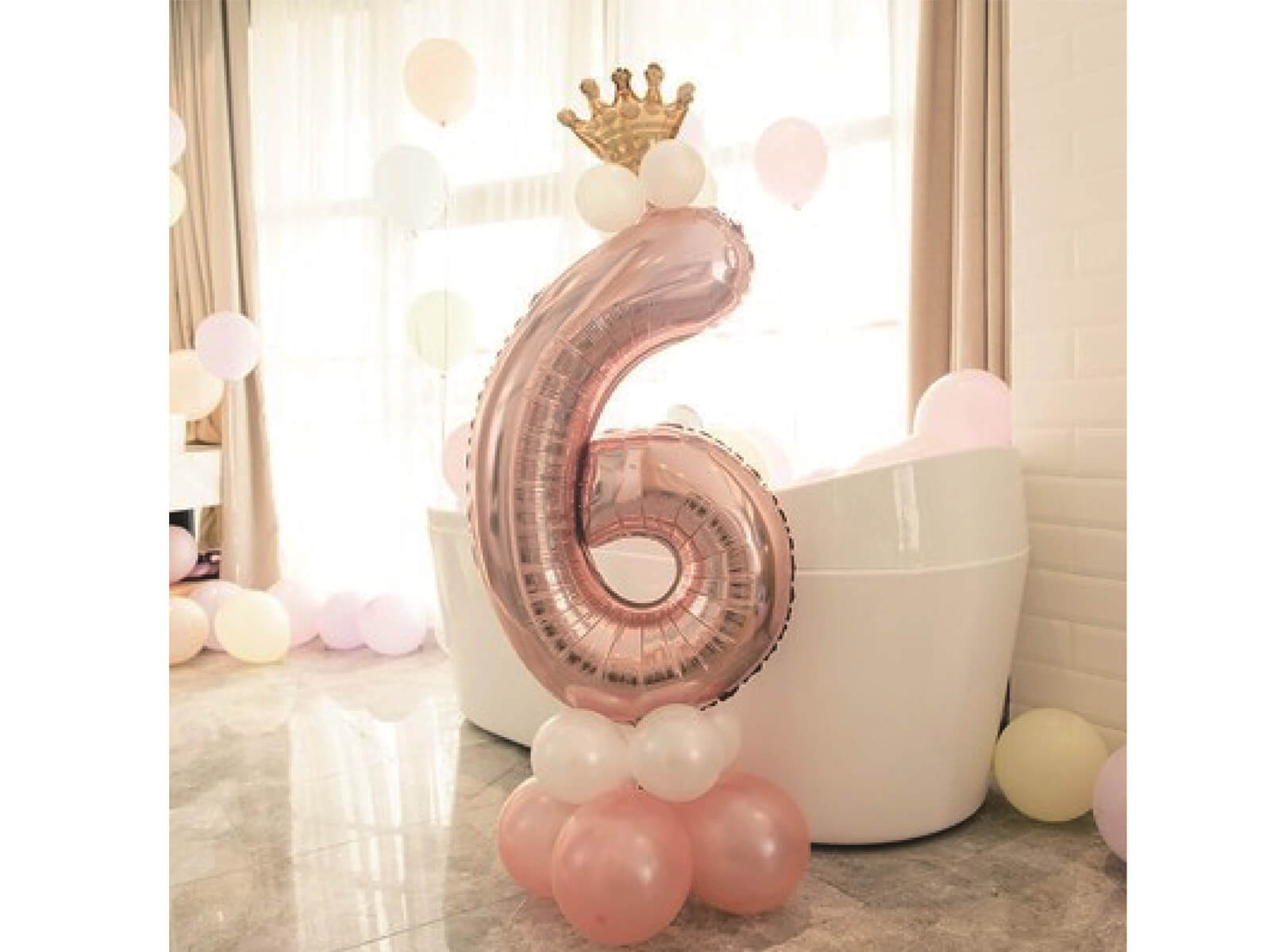 Set de baloane cu numărul șase aur roz - 15 buc.