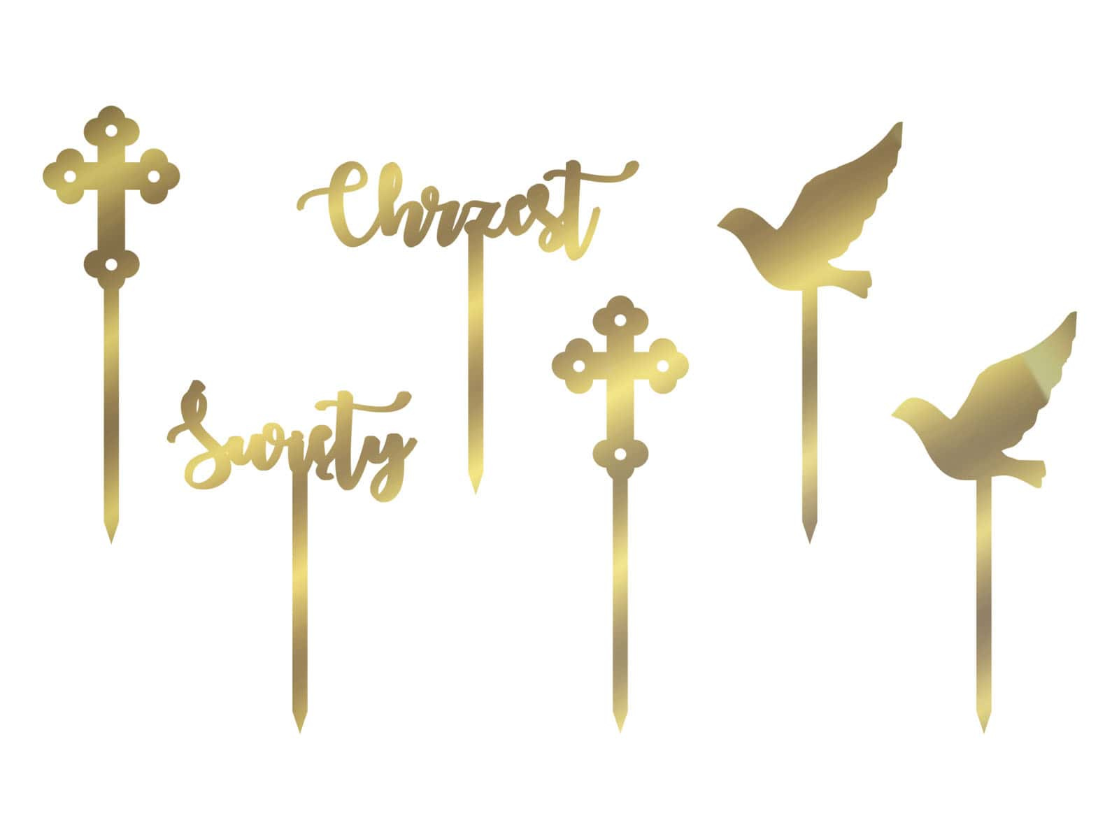 Decorațiuni din plexiglas cu oglinzi aurii pentru brioșe Botez - 6 buc.