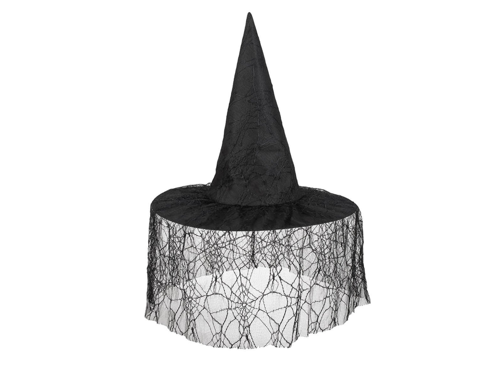 Pălărie de vrăjitoare neagră cu voal pentru Halloween - 1 buc.