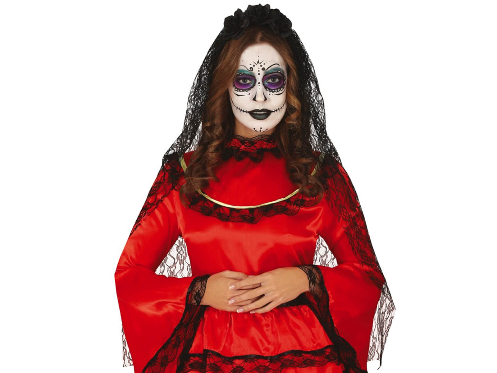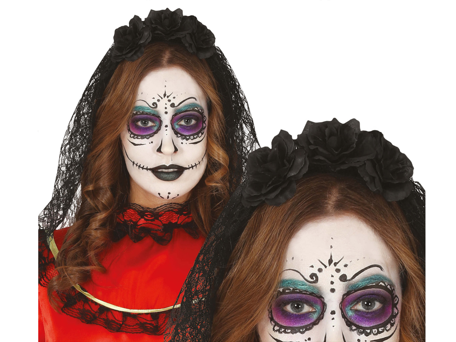 Bentiță cu voal și flori negru - 1 buc.