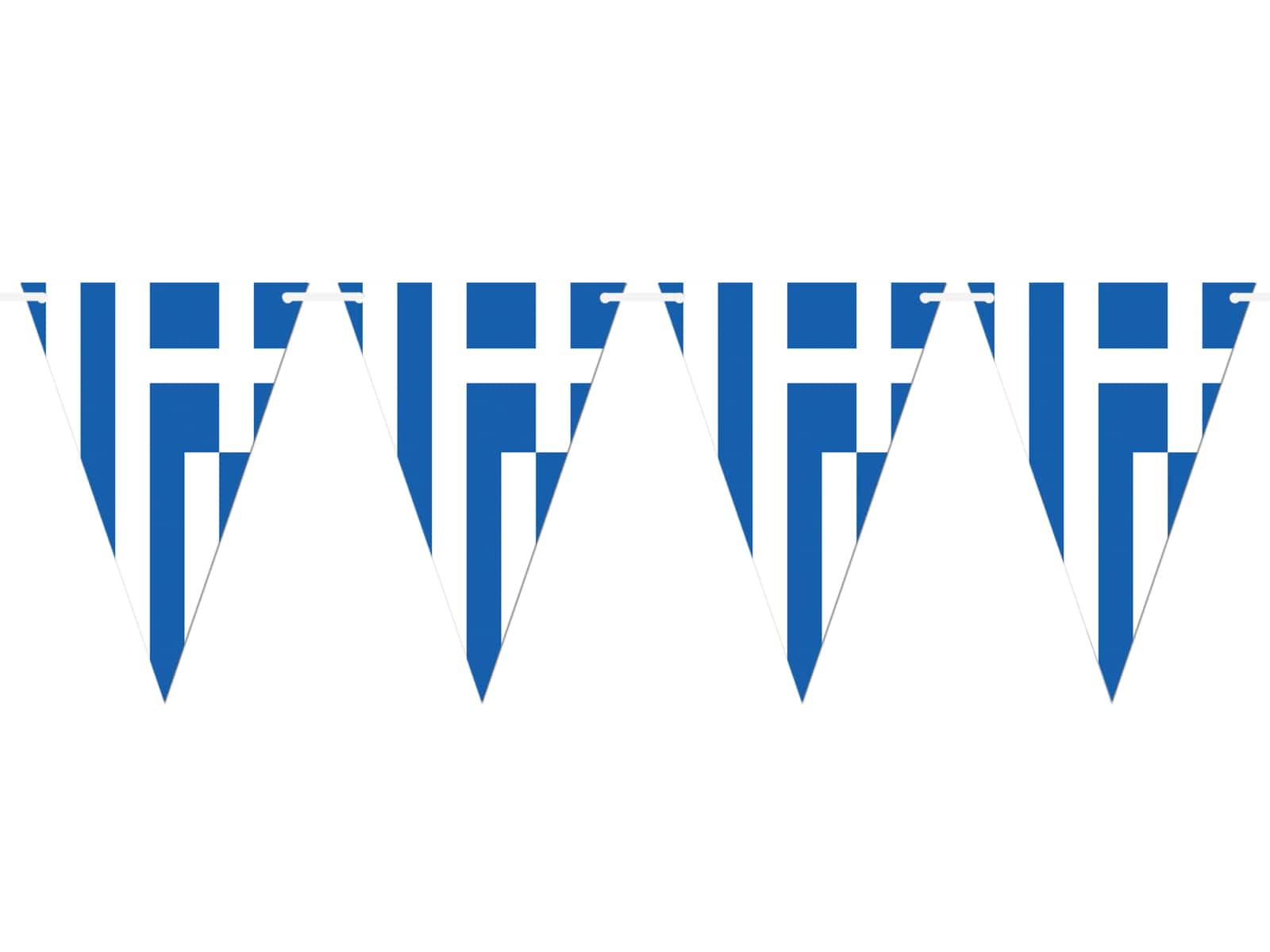 Steagul este format din 14 steaguri triunghiulare din hârtie de 10,5 x 15 cm, care sunt conectate printr-o panglică de aproximativ 5 metri lungime. Steagurile sunt fabricate din materiale de înaltă calitate, ceea ce le garantează durabilitatea și aspectul estetic. Designul steagului grecesc a fost reprodus cu atenție pentru a reflecta spiritul acestei frumoase țări.