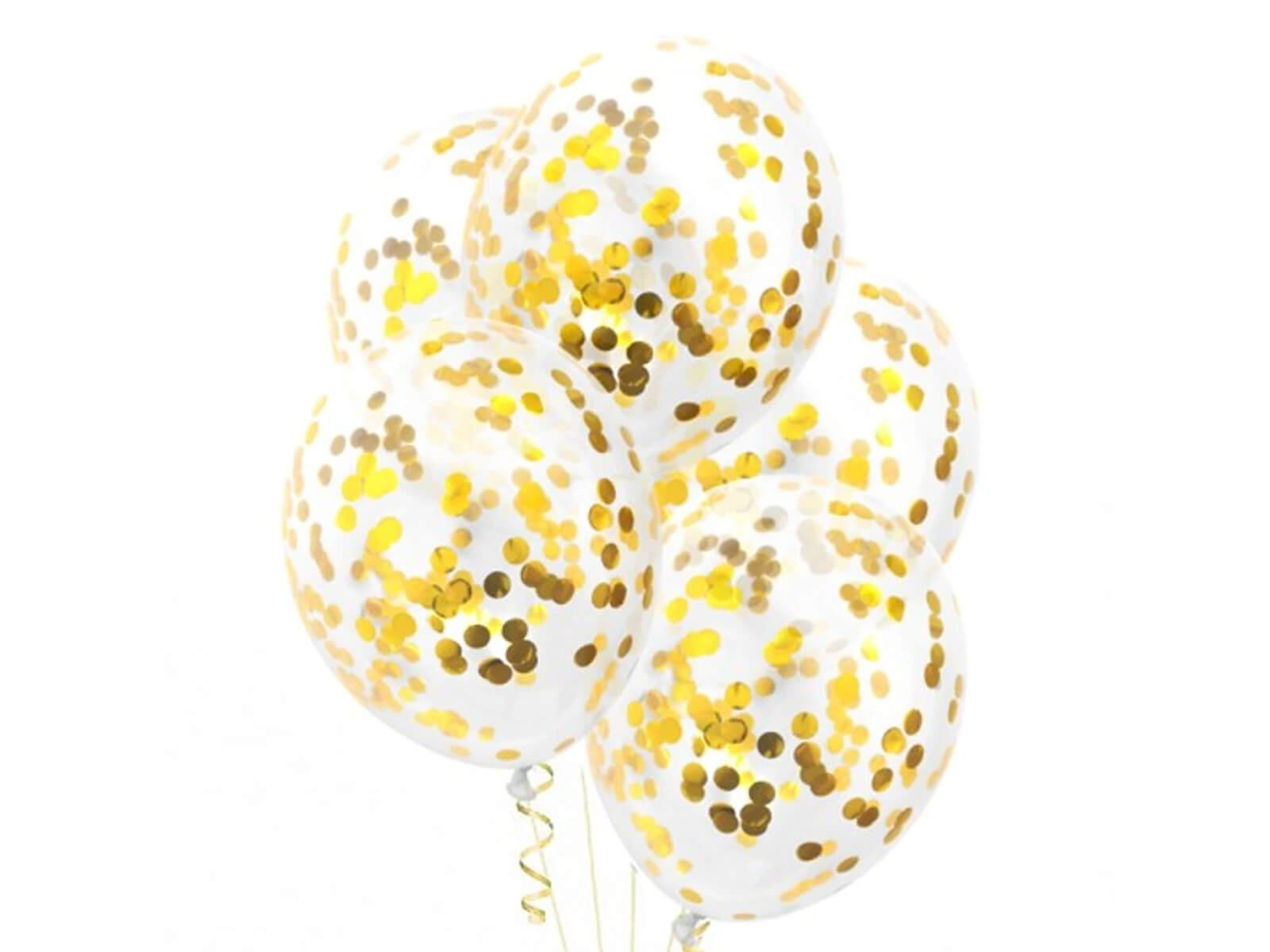 Baloane transparente cu confetti auriu - 30 cm - 5 buc