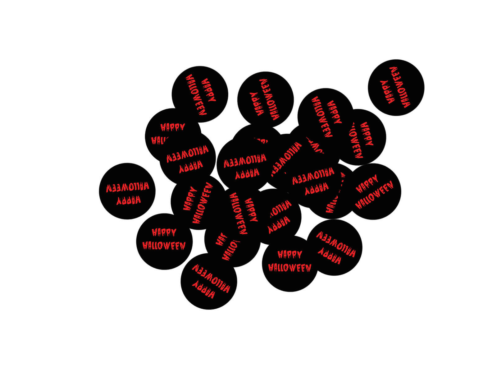 Ridică nivelul petrecerii tale de Halloween cu confetti-ul nostru unic! Fiecare piesă a fost lucrată cu grijă din hârtie și decorată cu cuvintele de culoarea sângelui "Halloween fericit". Perfecte pentru decorarea unei mese sau a unei săli, acestea vor adăuga o atmosferă întunecată oricărei nopți de Halloween. Fiecare piesă are 4 cm în diametru, ceea ce le face perfect vizibile, dar nu copleșitoare.