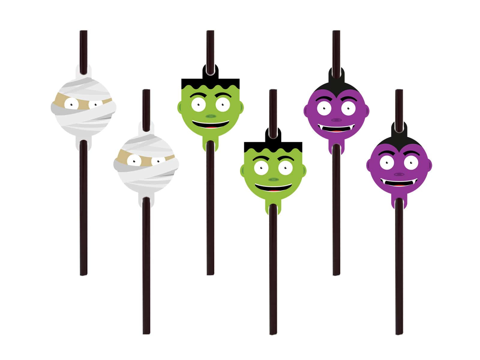 Îmbunătățiți starea de spirit a oricărei petreceri de Halloween cu paharele noastre unice Paie monstru! Aceste paie simple din hârtie sunt decorate cu medalioane colorate reprezentând personajele preferate ale monștrilor înfricoșători, dar adorabili - vampirul, mumia și Frankenstein.