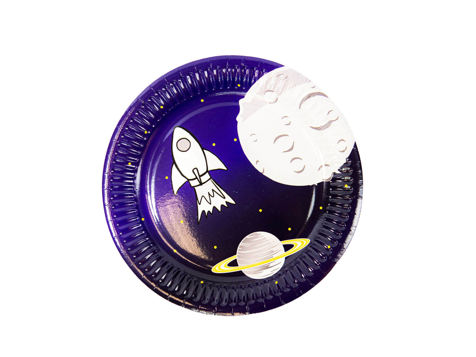 Farfuriile noastre de hârtie Cosmos sunt alegerea perfectă pentru toți iubitorii de spațiu, indiferent de vârstă. Ideală pentru petrecerile aniversare ale copiilor, dar și pentru alte evenimente tematice. Designul unic cu o temă spațială va adăuga energie și originalitate la orice petrecere.