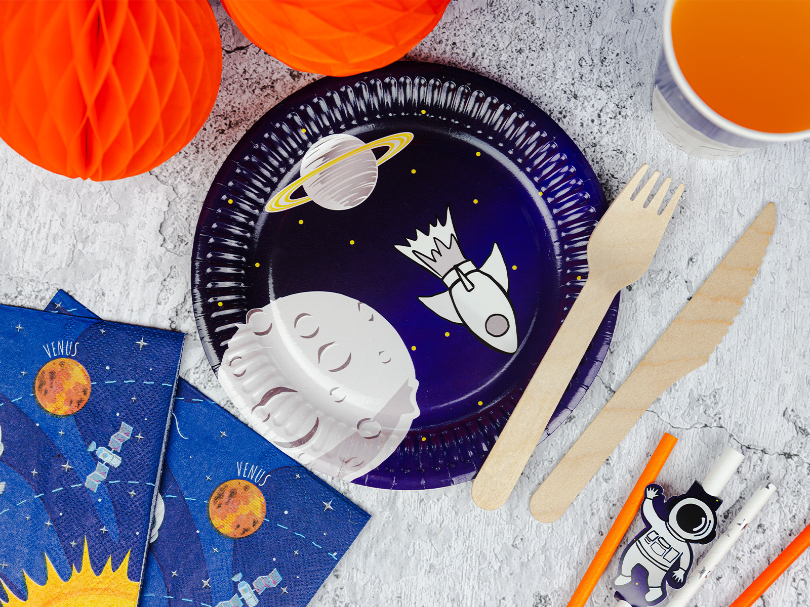 Ne-am angajat să fim prietenoși cu mediul, motiv pentru care farfuriile noastre aniversare Cosmos sunt fabricate din hârtie. Nu este doar un material confortabil, ci și ecologic. Astfel, puteți fi siguri că, participând la distracția spațială, aveți grijă de planetă.