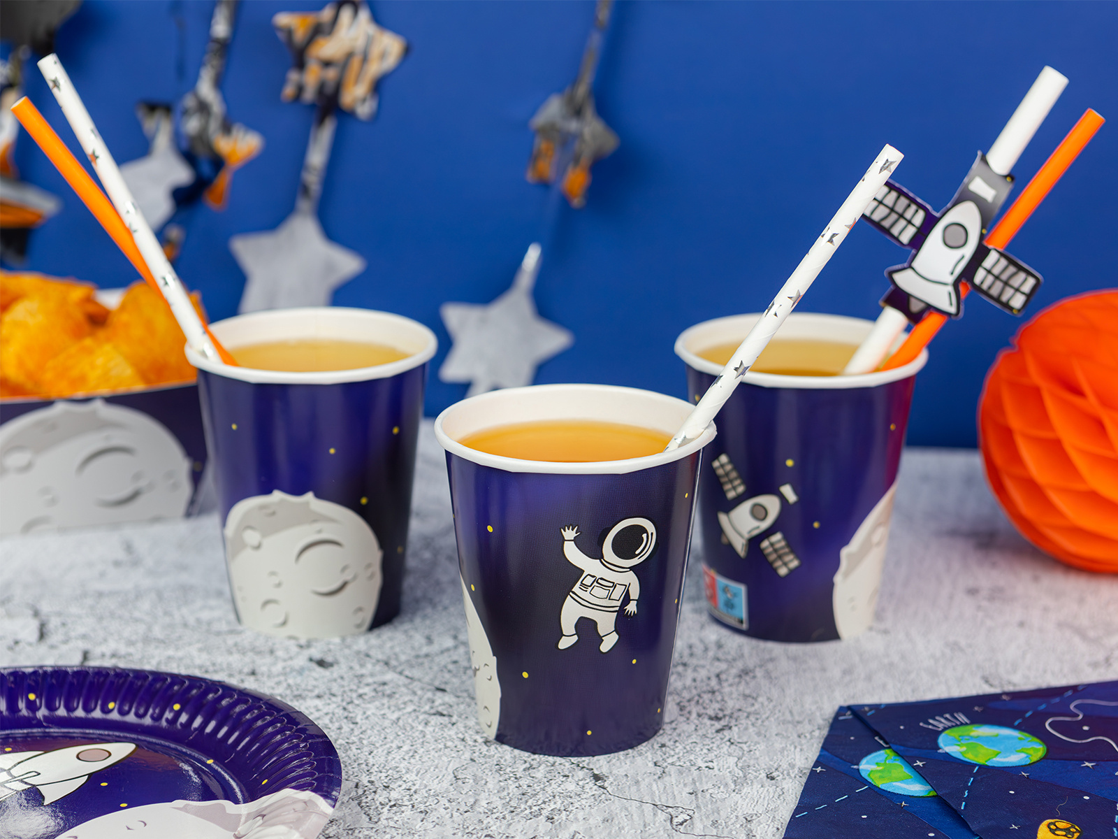 Veți găsi până la 6 pahare de hârtie Cosmos în set, suficiente pentru orice petrecere aniversară. De asemenea, le puteți completa cu alte gadgeturi din seria Cosmos - farfurii, șervețele sau ghirlande.