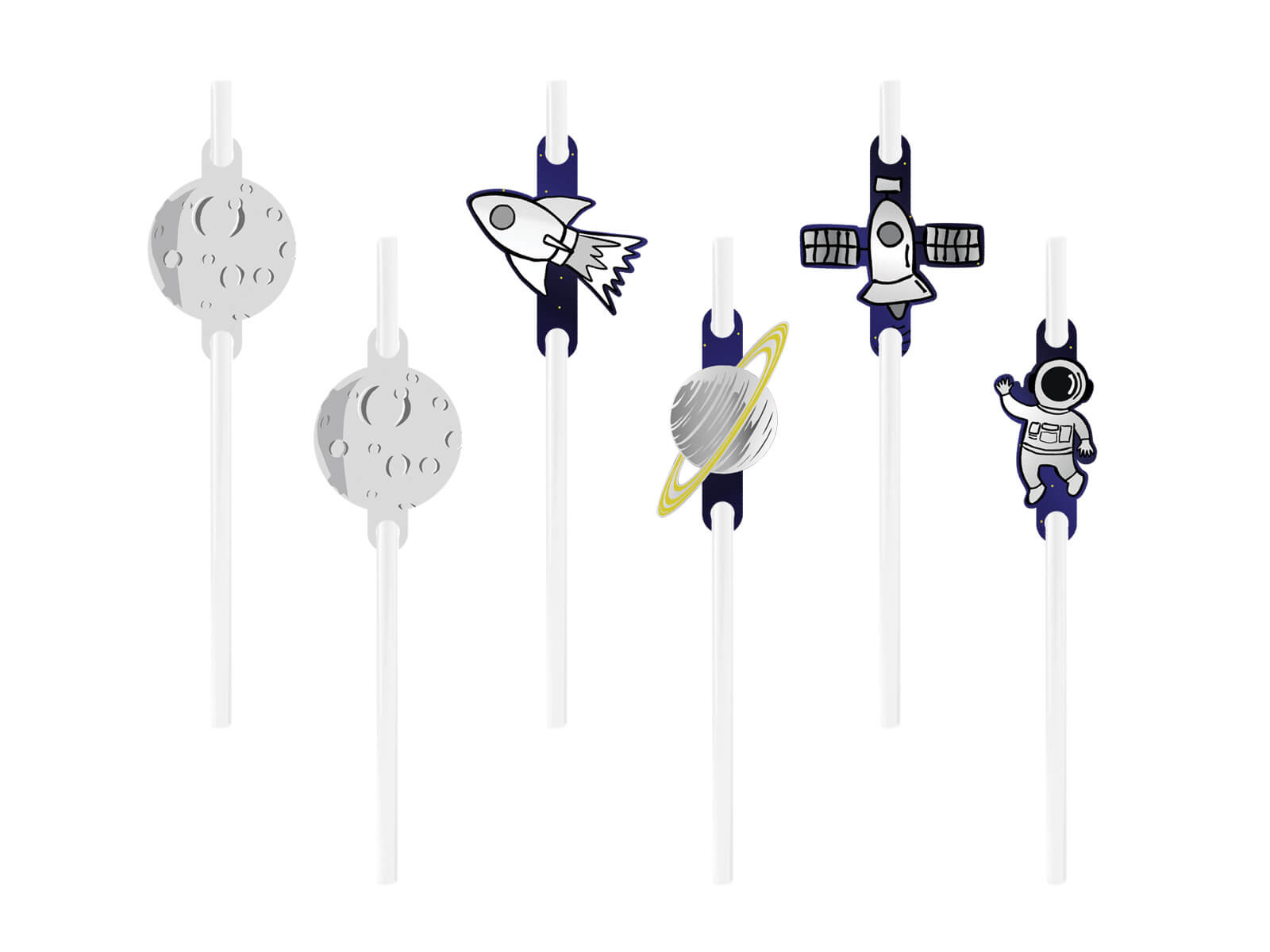 Fiecare pai este decorat cu un medalion original cu diametrul de 4 cm, reprezentând motive cosmice. Acest lucru le face un accesoriu perfect pentru decorarea mesei la o petrecere cu o temă spațială.