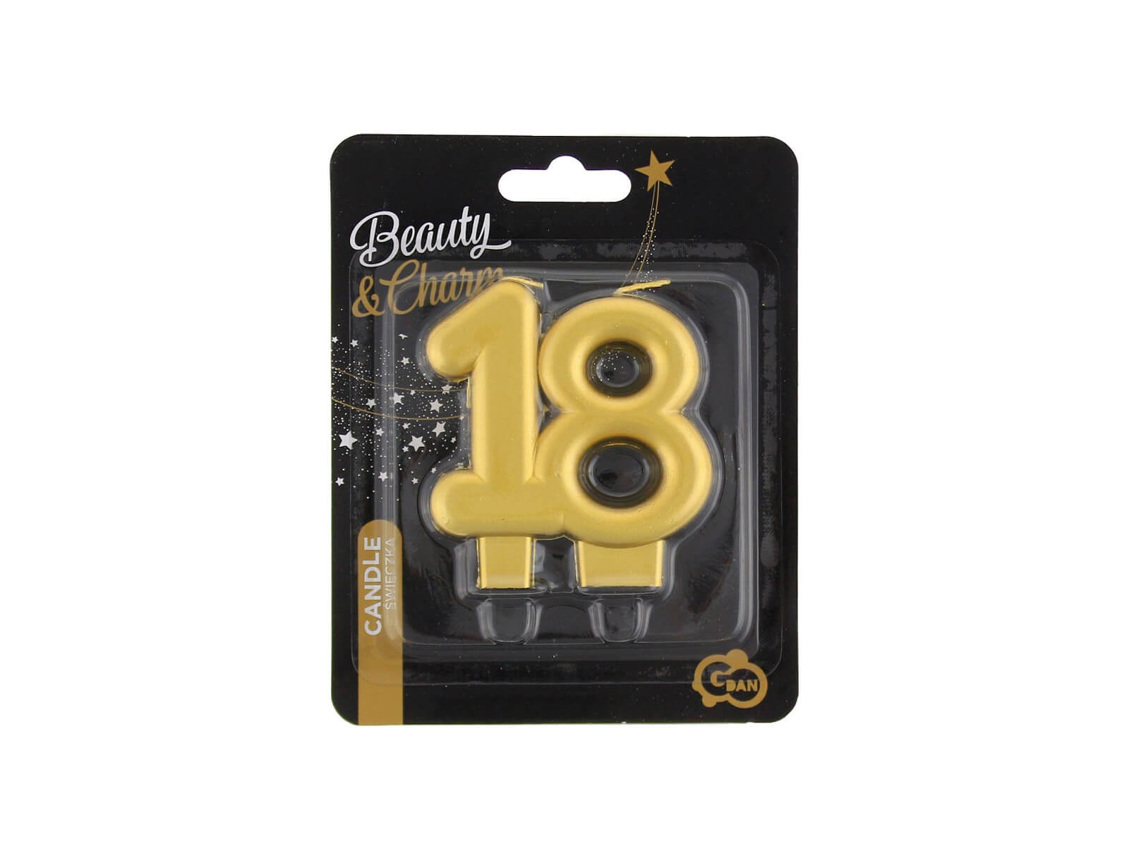 Lumânare aurie cu numărul "18" - perfectă pentru o petrecere aniversară de optsprezece ani!