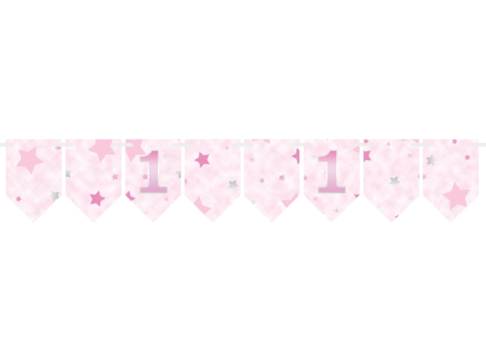 Steaguri banner pentru petrecerea de aniversare Stele roz - 5 m - 1 buc.
