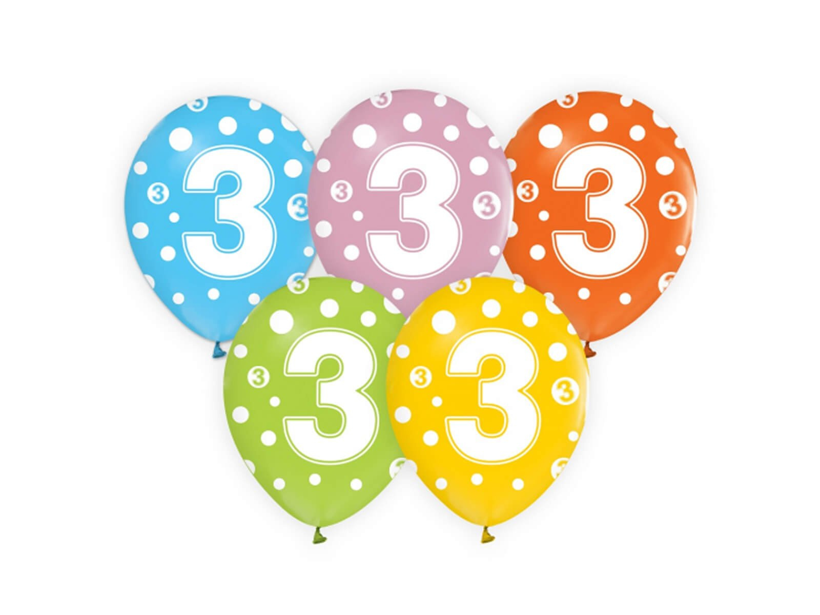 Baloane din latex cu numărul 3 - mix - 30 cm - 5 buc.