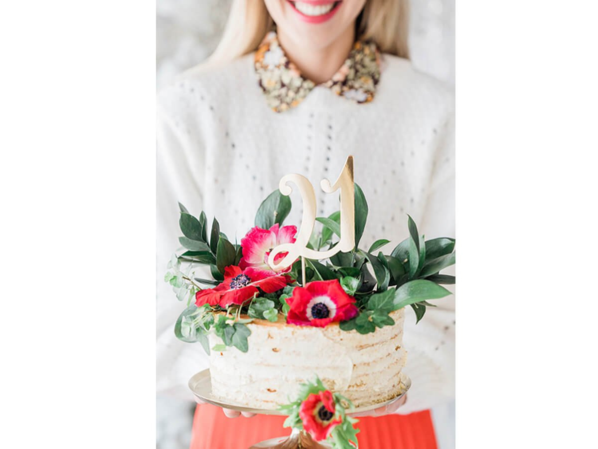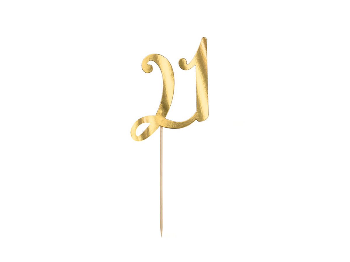 Cake topper pentru ziua de naștere 21 de aur - 20.5 cm - 1 buc.