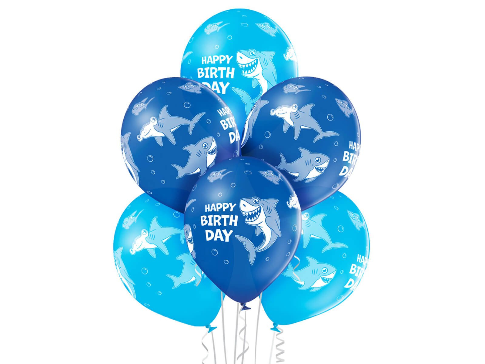Baloane latex Happy Birthday Shark - 12" - 6 buc.