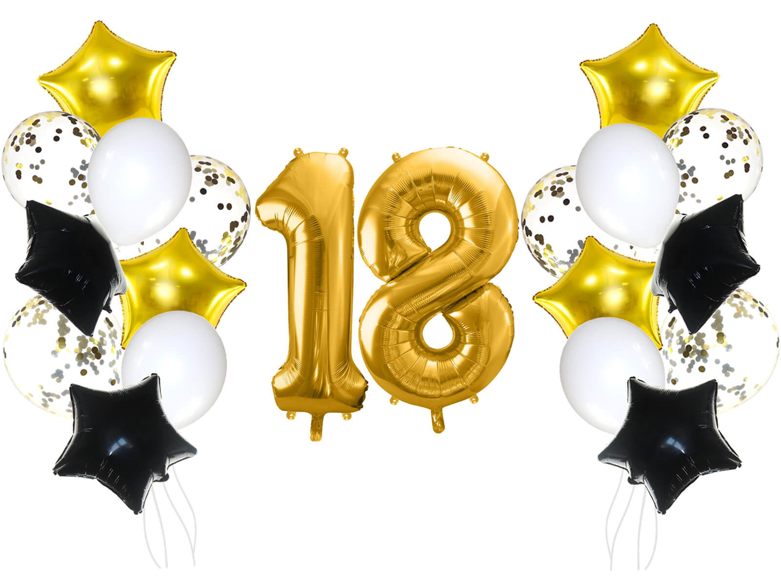 Set de baloane a 18-a aniversare auriu și negru - 21 buc.