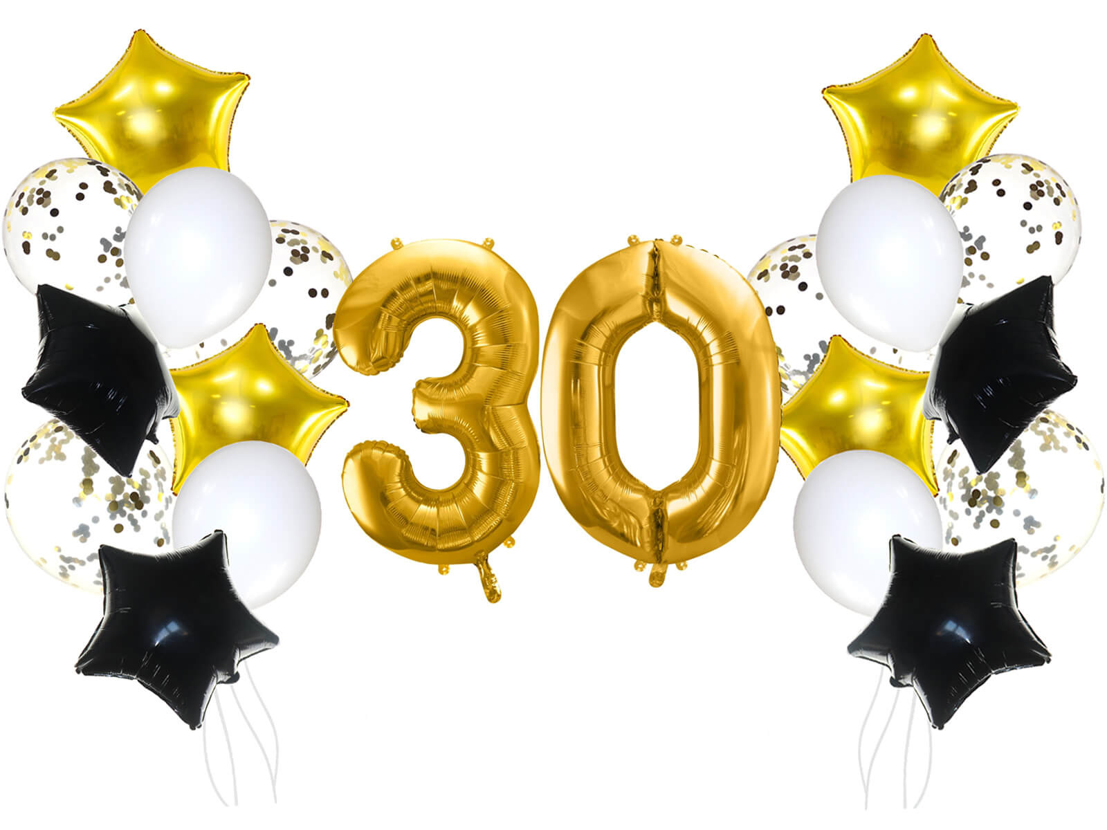 Set baloane aniversare 30 de ani aurii și negre - 21 buc.