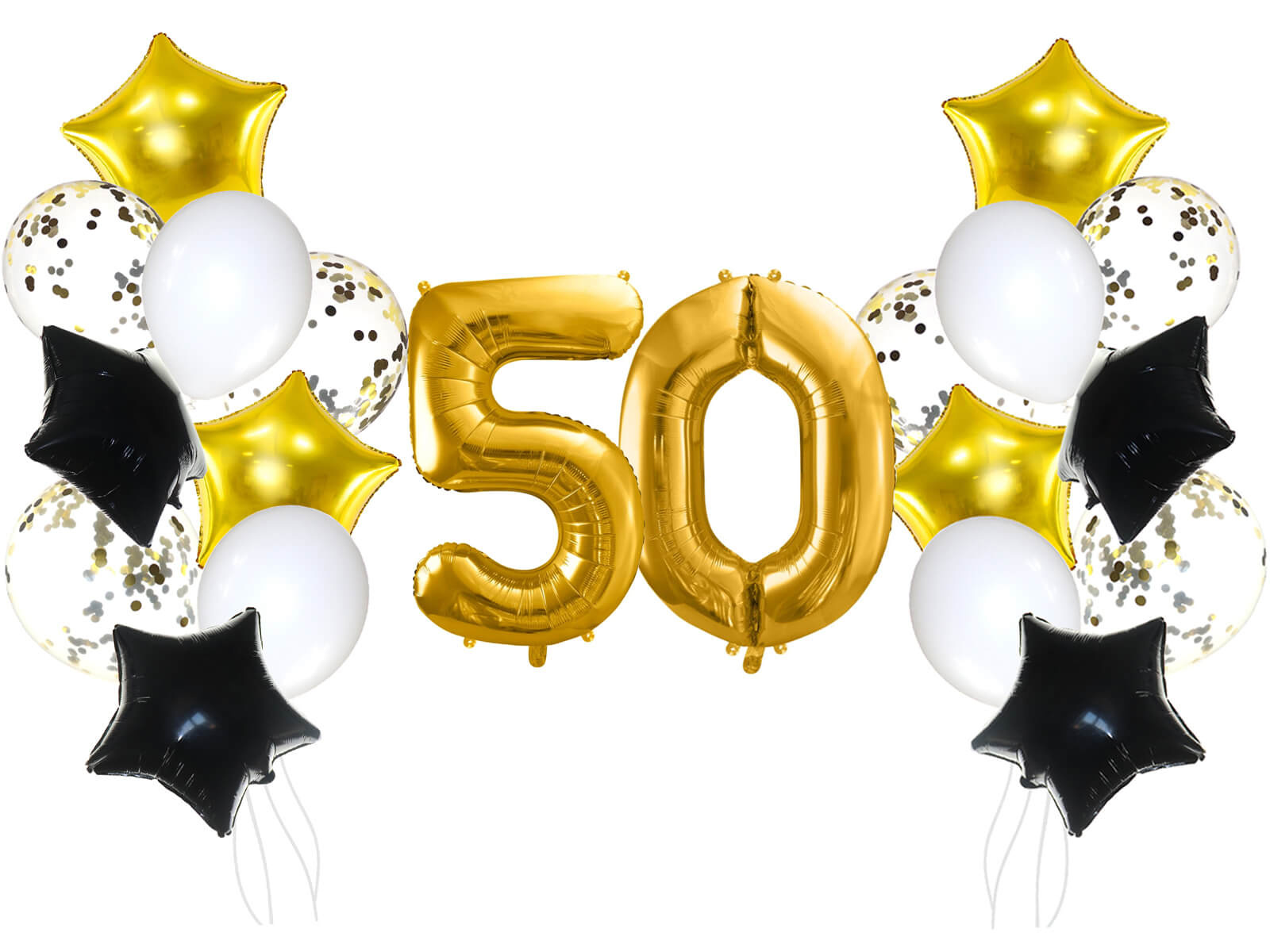 Set baloane aniversare 50 de ani aurii și negre - 21 buc.