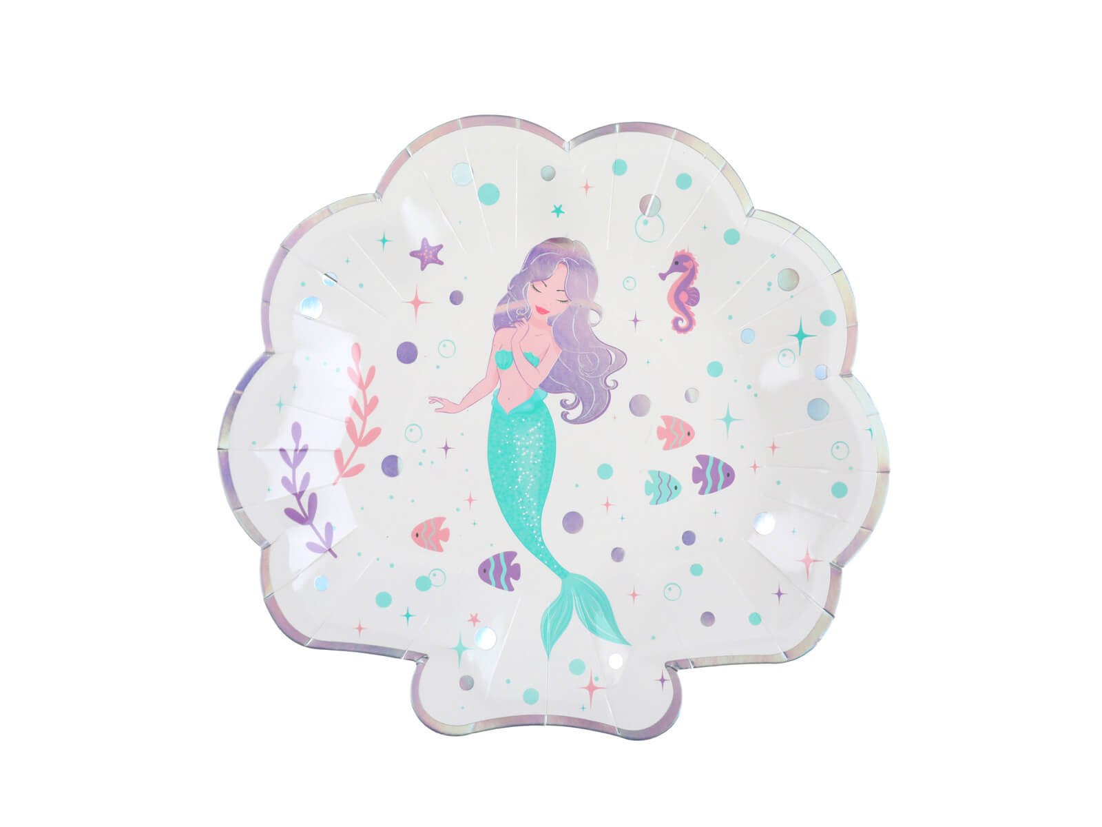 Modul perfect de a îmbunătăți orice petrecere aniversară! Farfuriile noastre imprimate cu sirene vor aduce o atmosferă nautică la petrecerea dvs. Aceste farfurii în formă de scoică cu un diametru de 22,7 cm sunt potrivite pentru petrecerile aniversare ale copiilor. Fiecare pachet conține 10 bucăți de veselă cu imprimeu de sirenă, fiind dimensiunea perfectă pentru orice sărbătoare sau adunare. Fie că plănuiți o reuniune de vară sau o petrecere cu tematică de sirenă, aceste farfurii vă vor ajuta să creați o ocazie memorabilă în cel mai scurt timp. Lăsați-i pe cei mici să se cufunde în distracție ronțăind gustările lor preferate pe aceste farfurii colorate Little Sirene, asociate cu creaturi marine asortate!