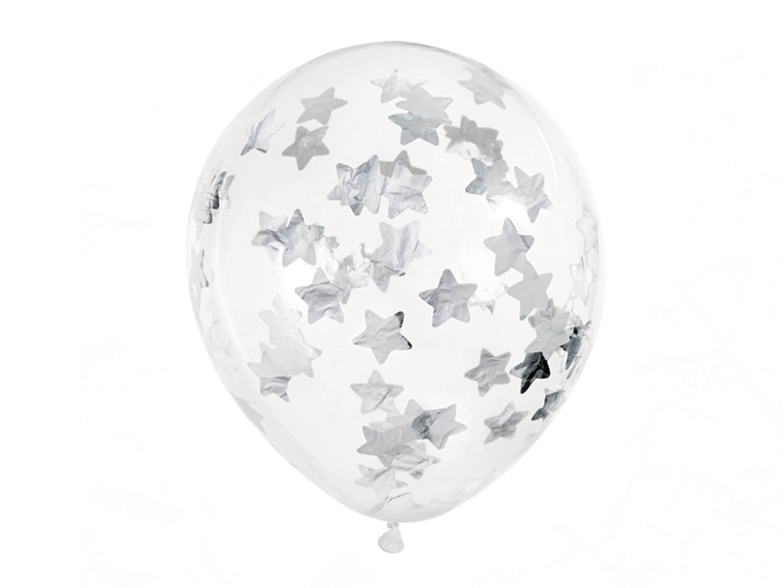 Baloane transparente cu confetti argintiu Stele - 30 cm - 6 buc.