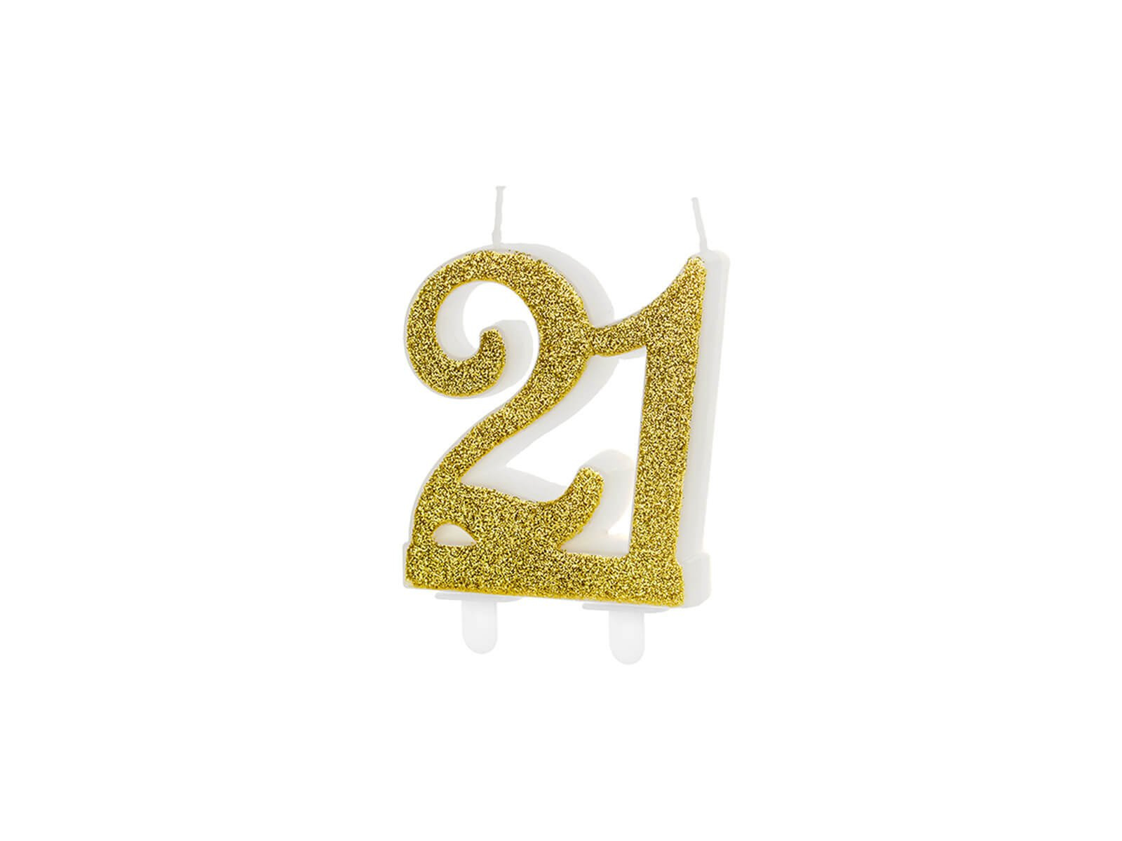 Lumânare numărul 21 cu sclipici auriu - 1 buc.