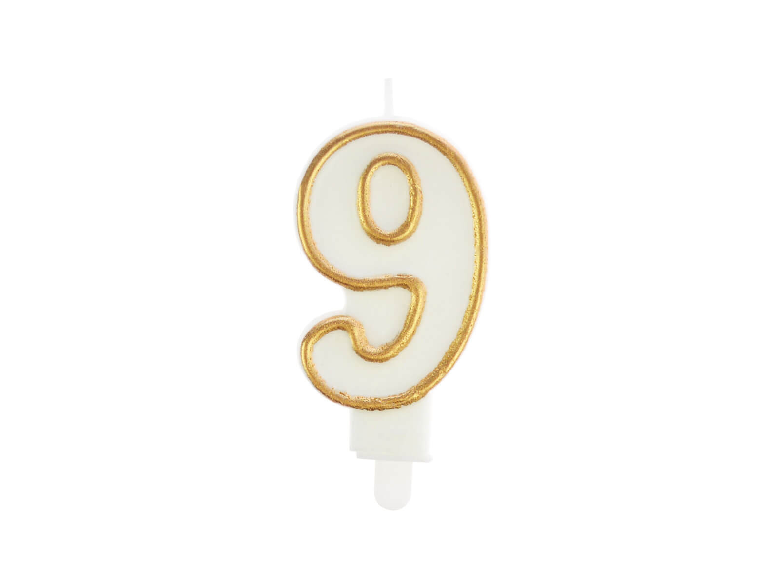 Lumânare numerică cu margine aurie - 9 - 1 buc.