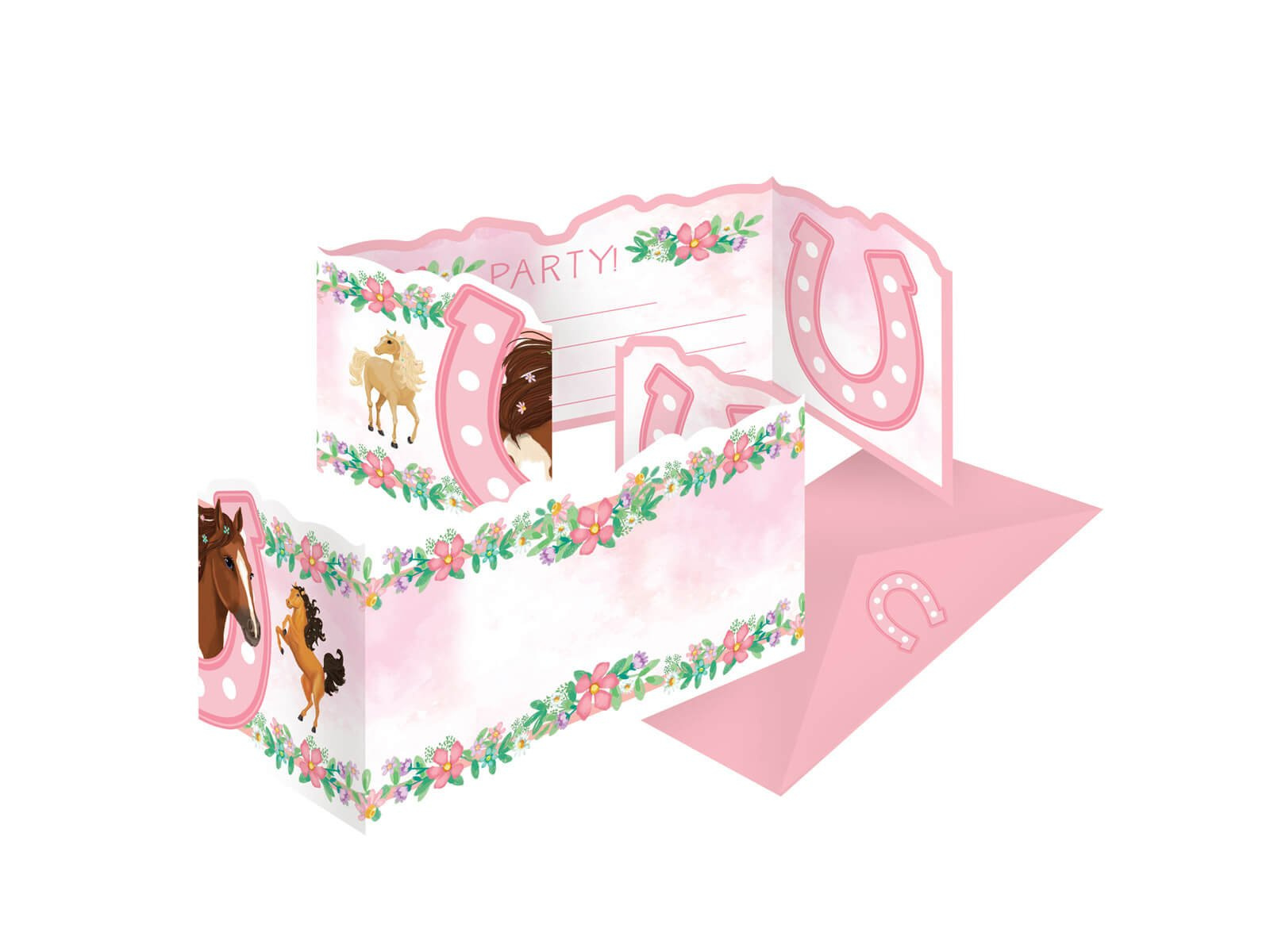 Invitații aniversare cu plicuri Cai frumoși - 8 buc.