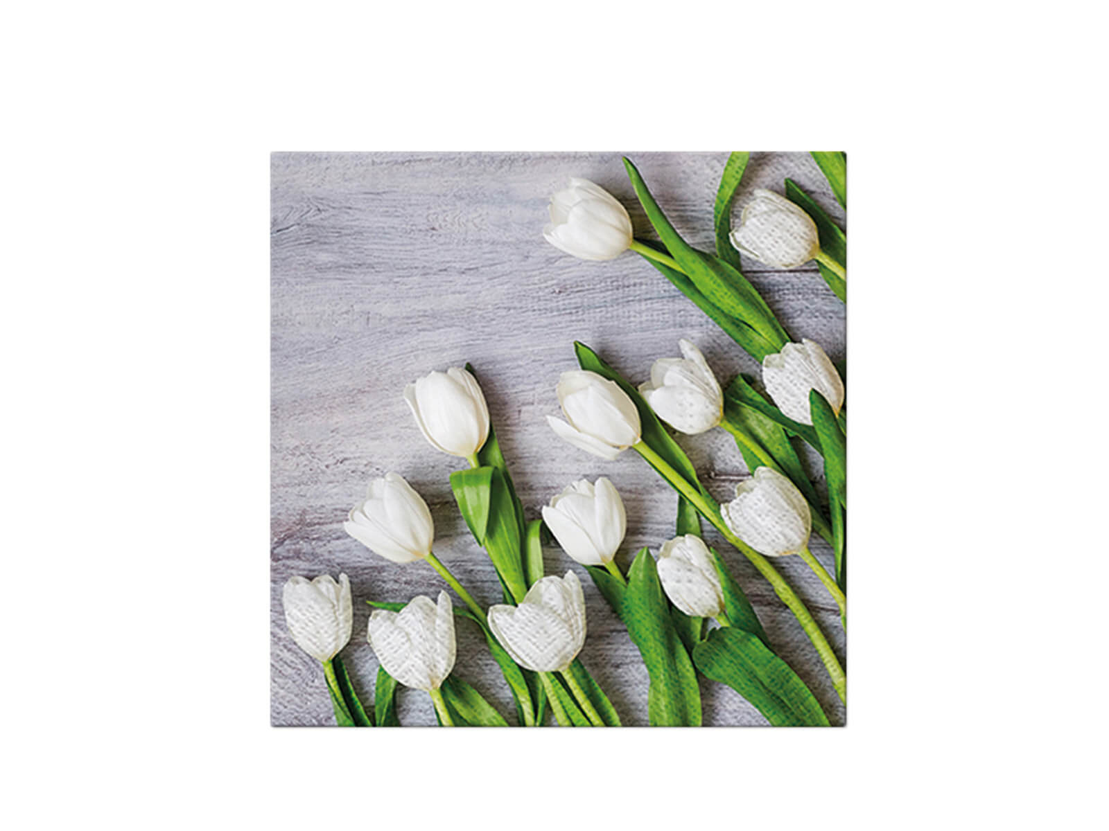 Șervețele albe cu lalele - 33 cm - 20 buc.
