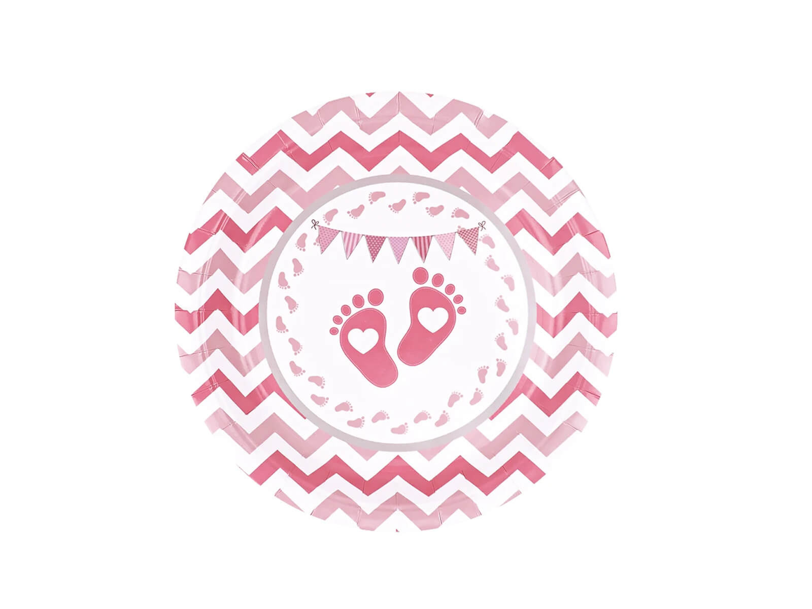 Farfurii pentru picioare Baby Shower roz - 23 cm - 6 buc.