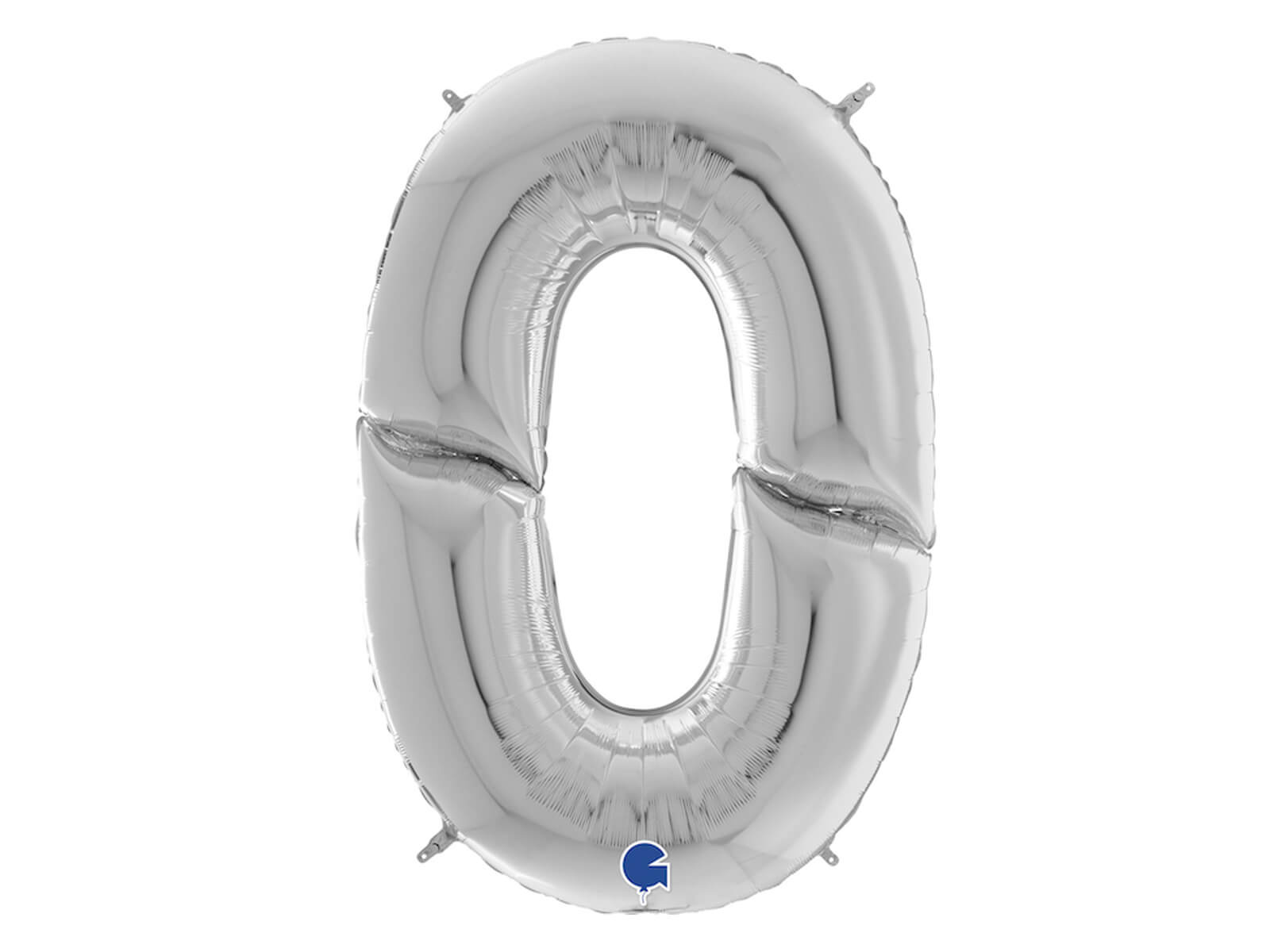Balon din folie numărul 0 argintiu - 163 cm - 1 buc.