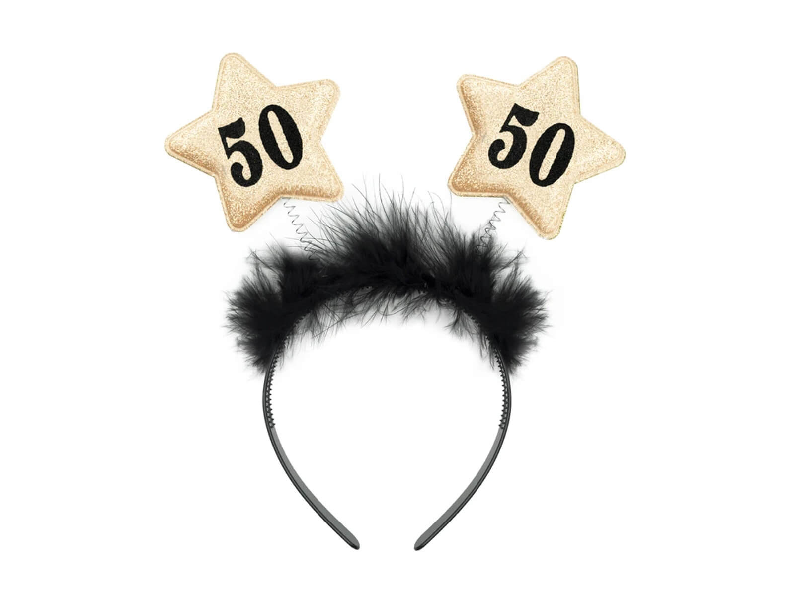 Vă apropiați de a 50-a aniversare sau organizați o petrecere pentru o persoană dragă? Dacă da, avem accesoriul perfect pentru tine pentru a adăuga strălucire acestei ocazii speciale! Bentița noastră neagră pentru a 50-a aniversare cu blană și stele aurii va face bijutierul să arate nu numai elegant, ci și absolut memorabil!