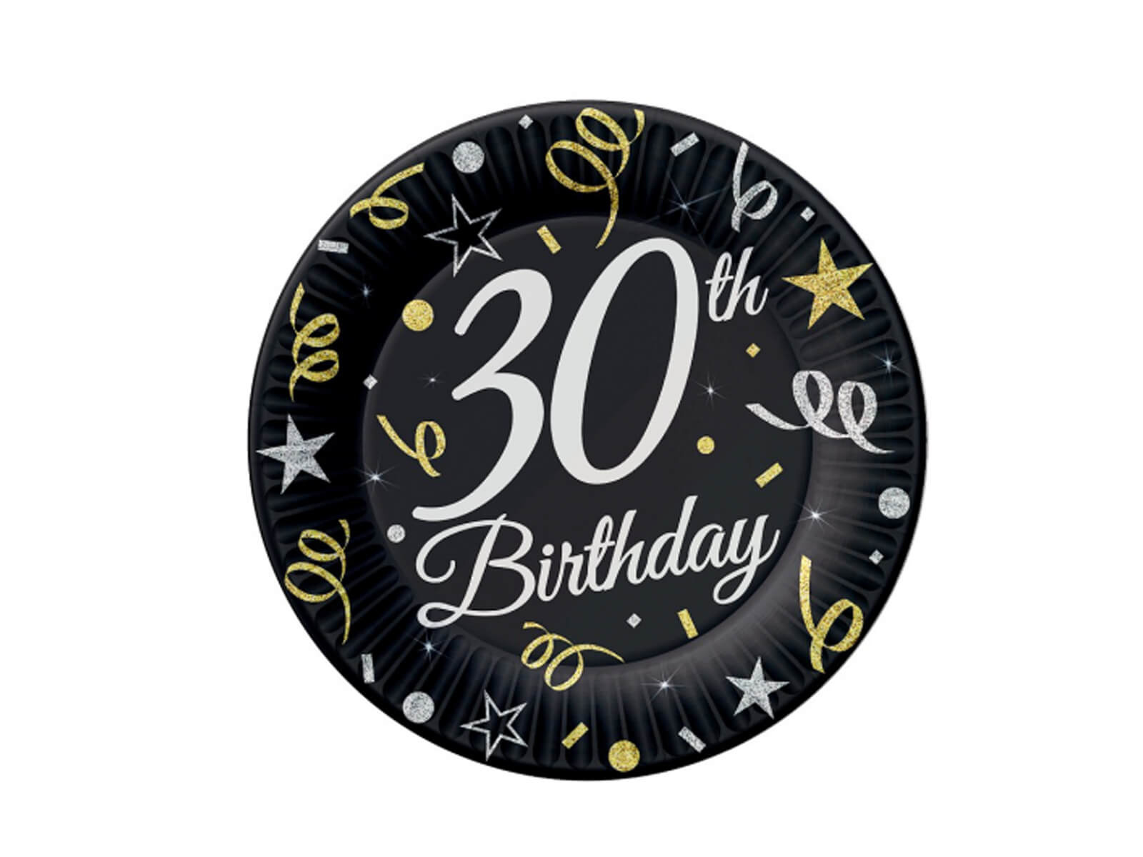 Farfurii a 30-a aniversare negru - 18 cm - 6 buc.