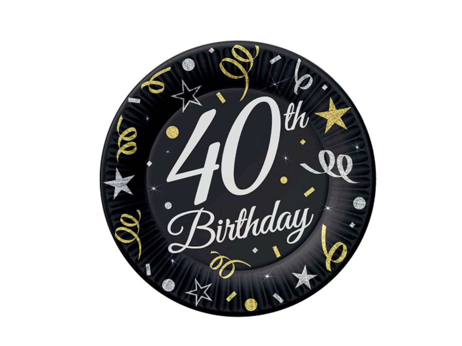 Farfurii pentru a 40-a aniversare negru - 18 cm - 6 buc.
