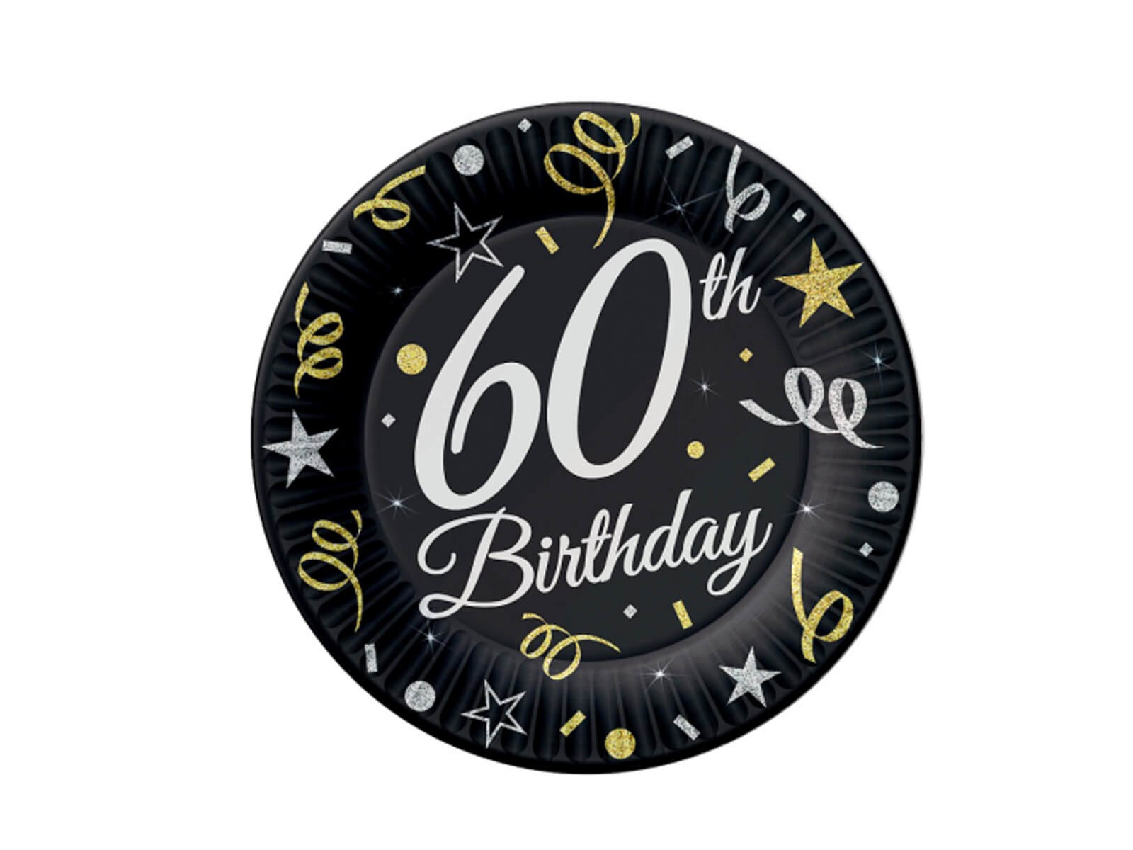 Farfurii aniversare 60 de ani negru - 18 cm - 6 buc.