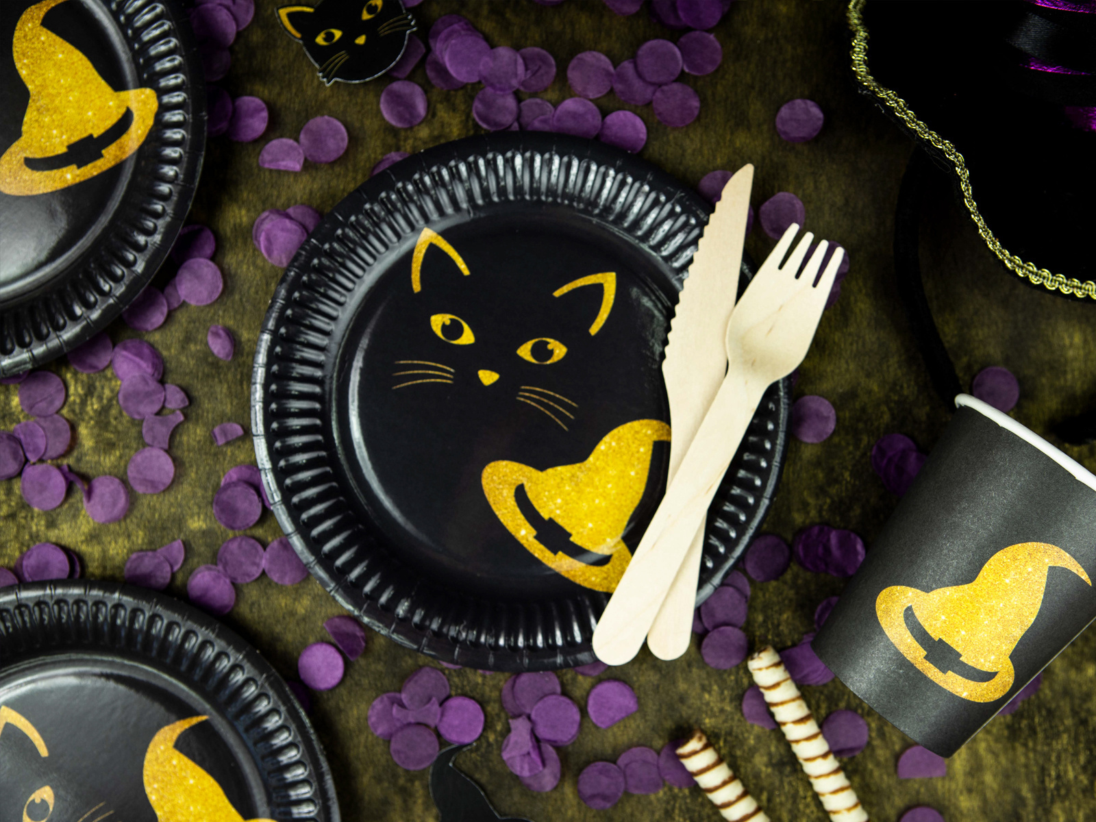 Farfurii de Halloween Vrăjitoare și pisică - 18 cm - 6 buc.