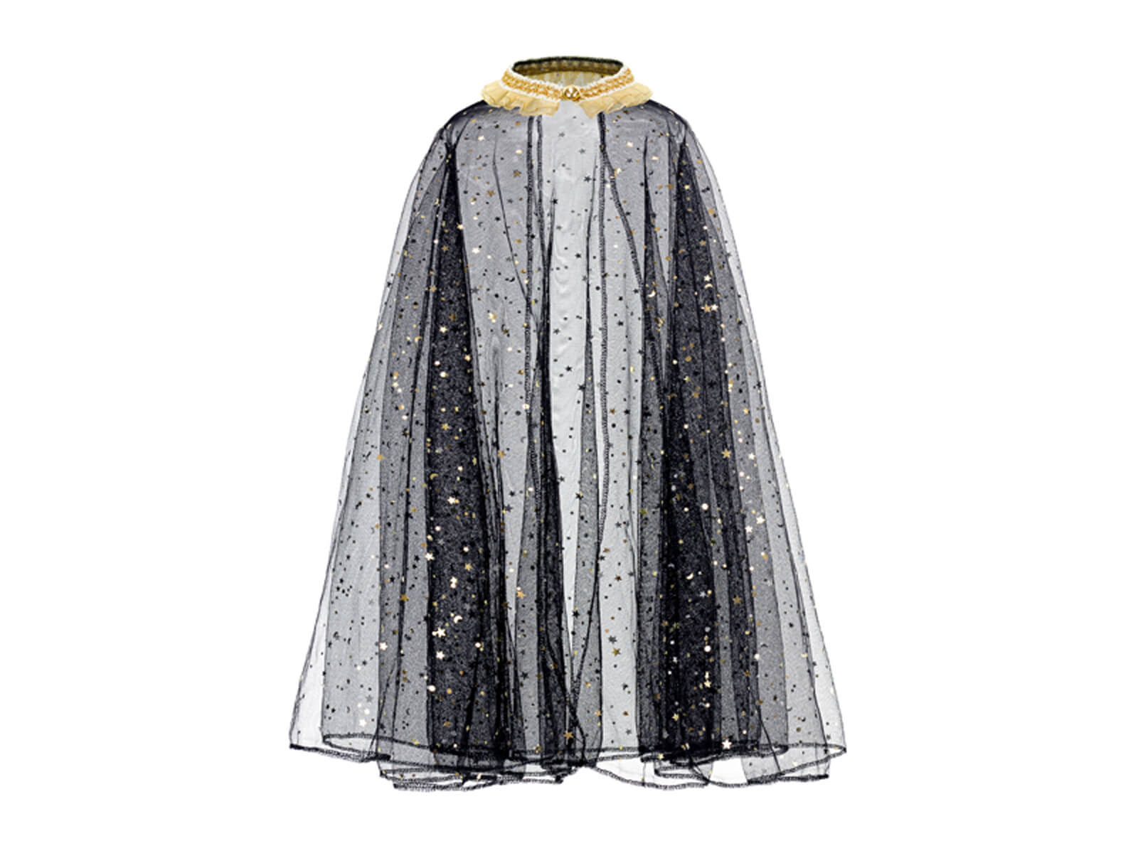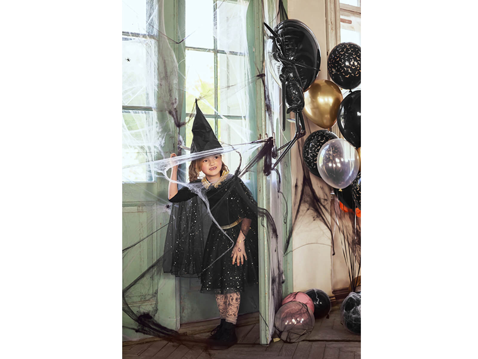 Transformați Halloween-ul sau Andrzejki într-o aventură magică cu pelerină pentru copii. Această pelerină neagră elegantă cu un model auriu va adăuga mister costumului oricărui copil. Perfect ca o completare la o varietate de costume tematice, fie pentru vrăjitoare mici sau magicieni misterioși.