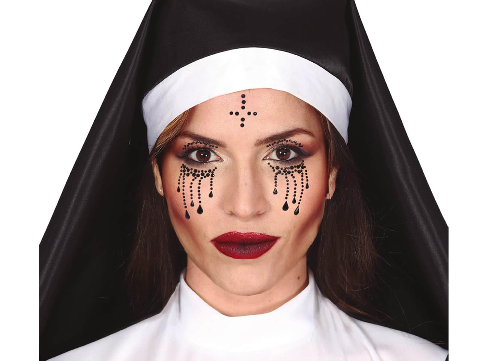 Accentuați-vă costumul de călugăriță cu aceste bijuterii unice autoadezive pentru față! Perfect pentru Halloween și alte ocazii speciale, aceste autocolante luminescente adaugă strălucire neconvențională și originalitate ținutei tale. Perfect pentru oricine dorește să adauge un pic de strălucire personajului său, fie că sunteți la o petrecere sau participați la un eveniment de costume.
