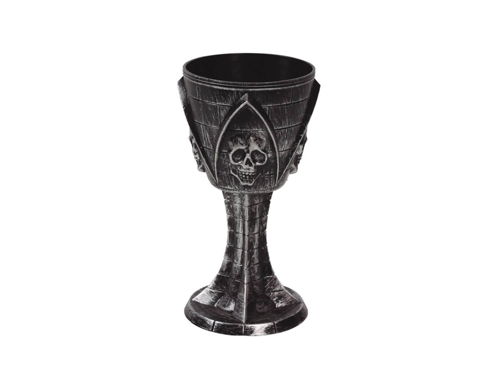 Înfrumusețați-vă festivitățile de Halloween cu acest pahar de vin elegant și gotic în formă de craniu! Perfect pentru o petrecere de vise macabre, acest pahar de vin din plastic va ridica cu siguranță câteva sprâncene înfricoșătoare. Modelul negru chic emană rafinament și oferă fundalul perfect pentru structura scheletului, care creează o siluetă impresionantă. Înălțimea de 19 cm adaugă dramatism mesei și oferă invitaților dvs. ceva despre care să vorbească! Fie că doriți să sorbiți punch sau să serviți suc proaspăt de struguri, lăsați acest potir să fie accesoriul dvs. decorativ la toate sărbătorile dvs. de bântuire. Fiecare cutie conține o ceașcă - alegerea perfectă pentru a adăuga o notă de eleganță întunecată la orice ocazie.