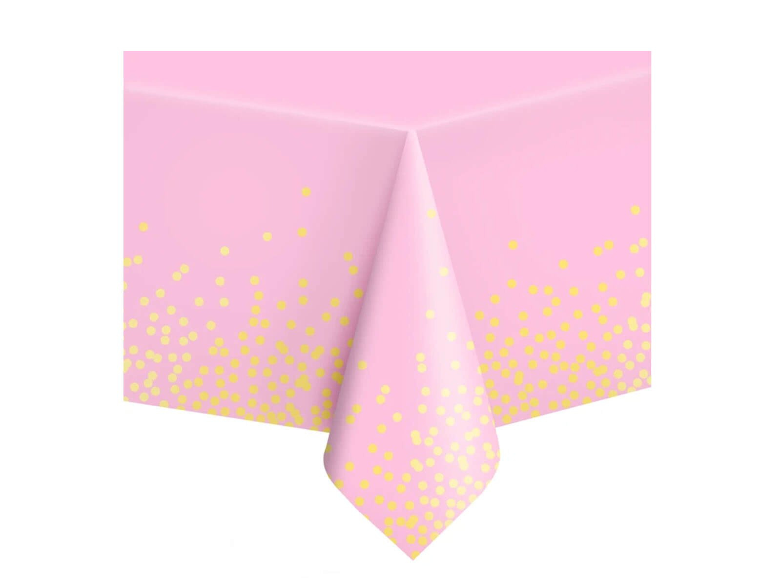 Față de masă aniversară roz cu puncte aurii - 137 x 274 cm - 1 buc.