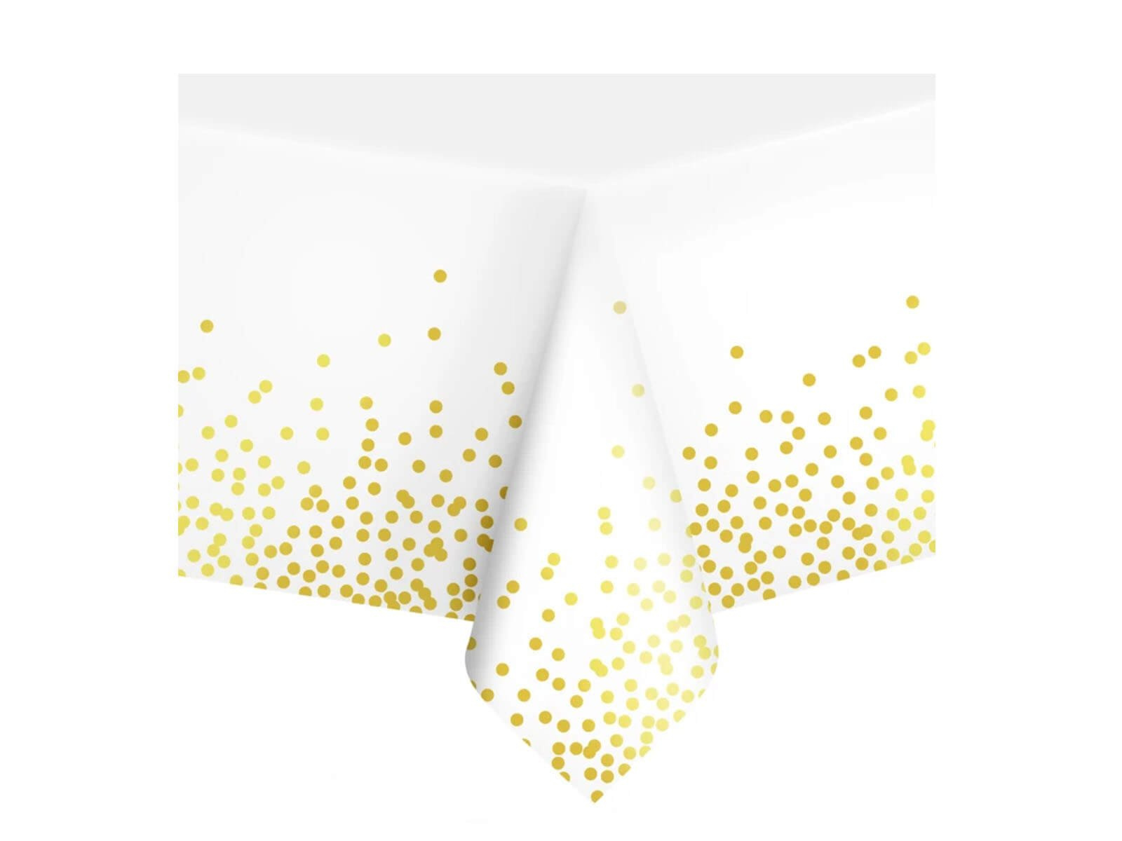 Față de masă aniversară albă cu puncte aurii - 137 x 274 cm - 1 buc.