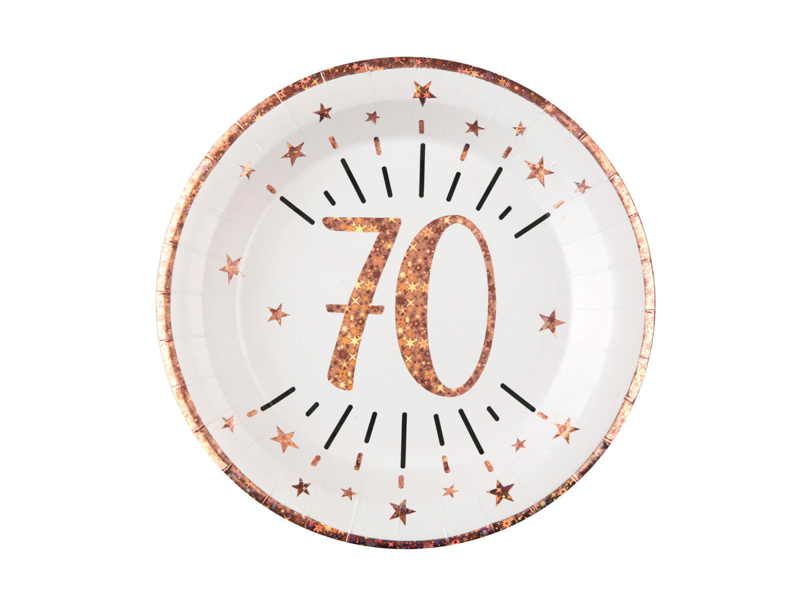 Farfurii strălucitoare roz auriu pentru a 70-a aniversare - 22,5 cm - 10 buc.