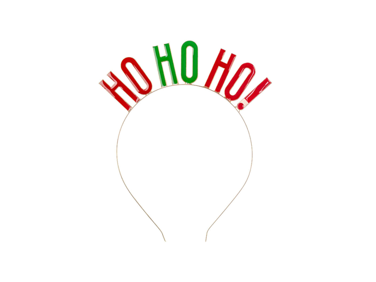 Pregătește-te să sărbătorești în stil unic cu bentița noastră metalică HO HO HO HO! Perfectă ca o atingere finală pentru ținuta dvs. festivă, această bentiță colorată vibrant are litere în roșu i verde va adăuga strălucire oricărei petreceri de Crăciun.