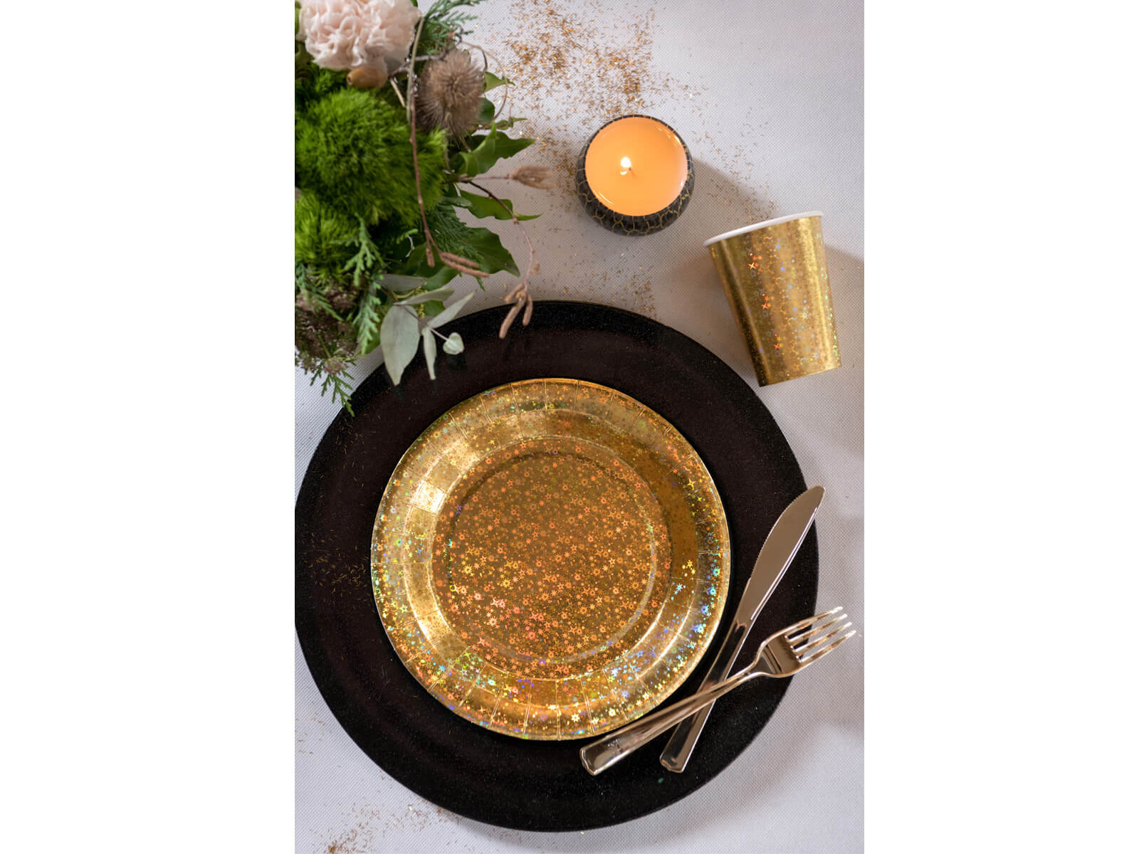 Este timpul să începeți petrecerea cu cănile noastre aurii! Aceste pahare de hârtie elegante și unice sunt perfecte pentru a intensifica atmosfera la o aniversare, Revelion sau petrecere de găină. Cu culoarea aurie și imprimeul holografic cu stele, cu siguranță vei străluci! În plus, fiecare cană are o capacitate de 270 ml, suficient de mare pentru a prepara băuturi festive cu multe bule! Într-un set de 10, ne-am asigurat că există suficiente pahare pentru toată lumea, așa că servește-te și încurajează petrecerea! Comandați cu ușurință căni online și bucurați-vă de ore de sărbătoare minunată. Noroc!