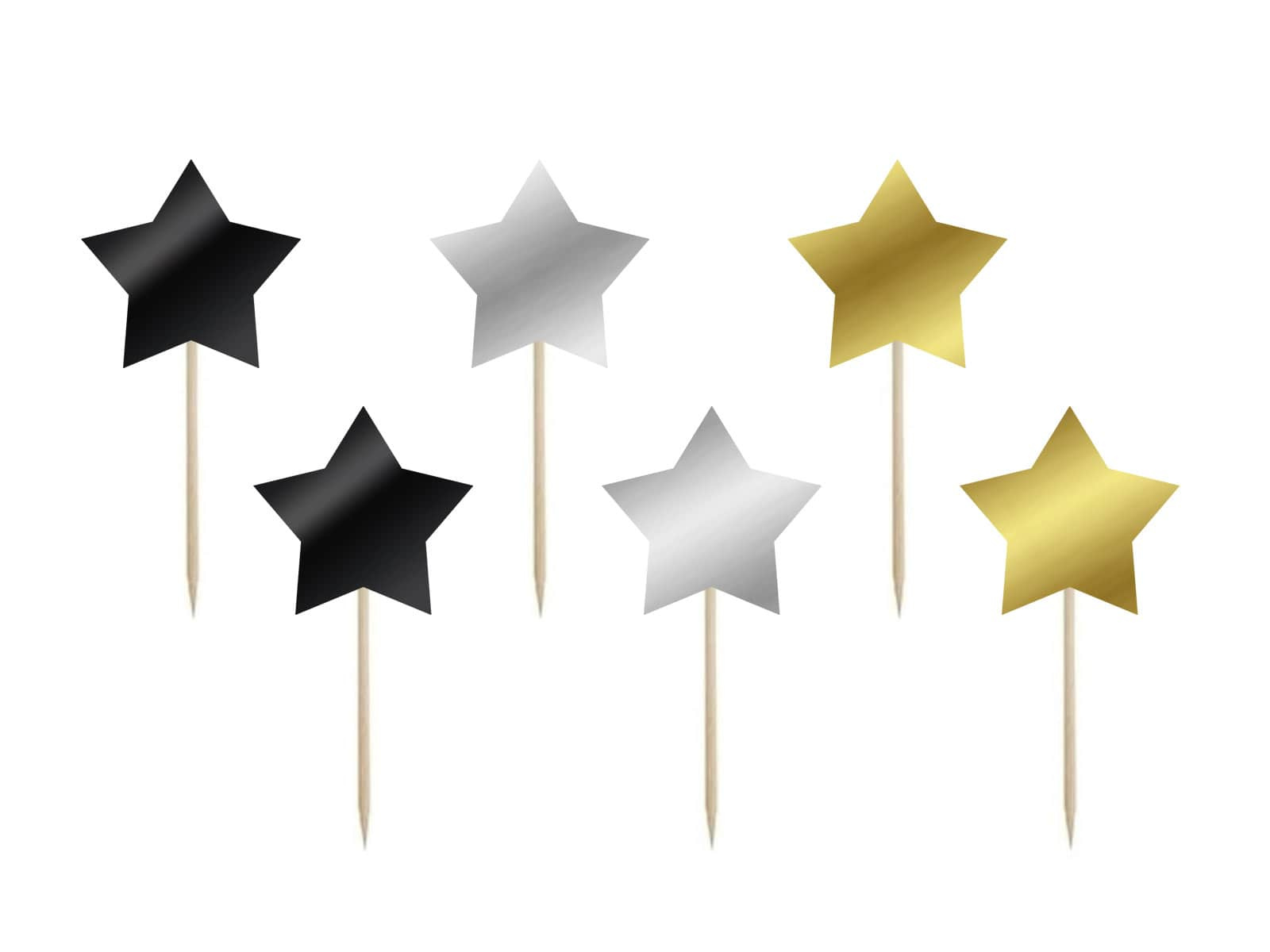 Pene de stea negre, aurii și argintii - 7 cm - 6 buc.