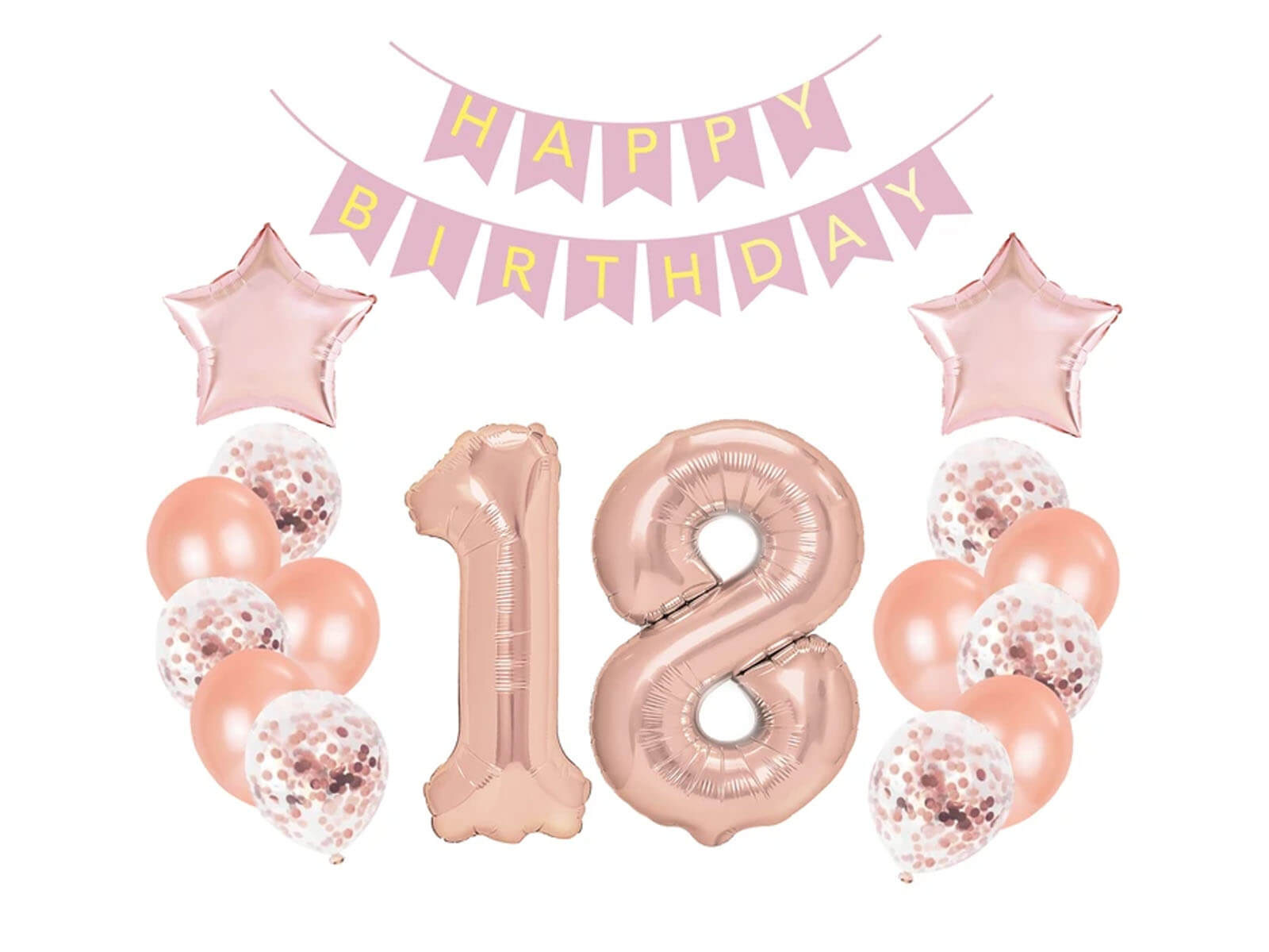 Nu așteptați! Comandați astăzi setul nostru de optsprezece baloane din aur roz și asigurați-vă că ziua dvs. de naștere este de neuitat!