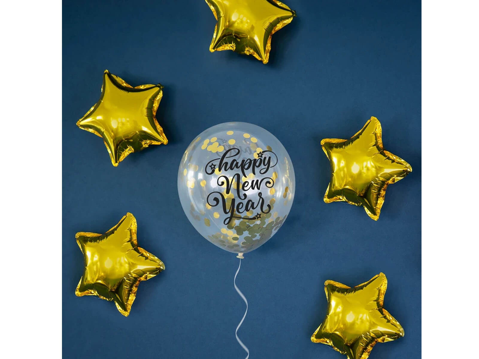 Baloane transparente Happy New Year cu confetti - 30 cm - 100 buc.