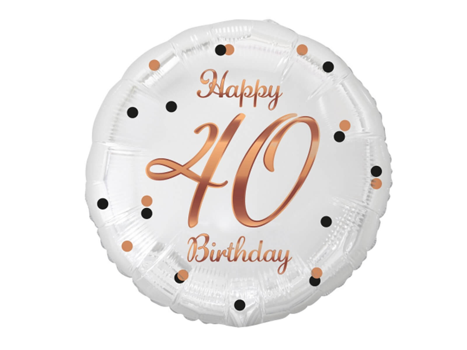 Balon din folie pentru patruzeci de ani cu imprimare de aur roz - 46 cm - 1 buc.
