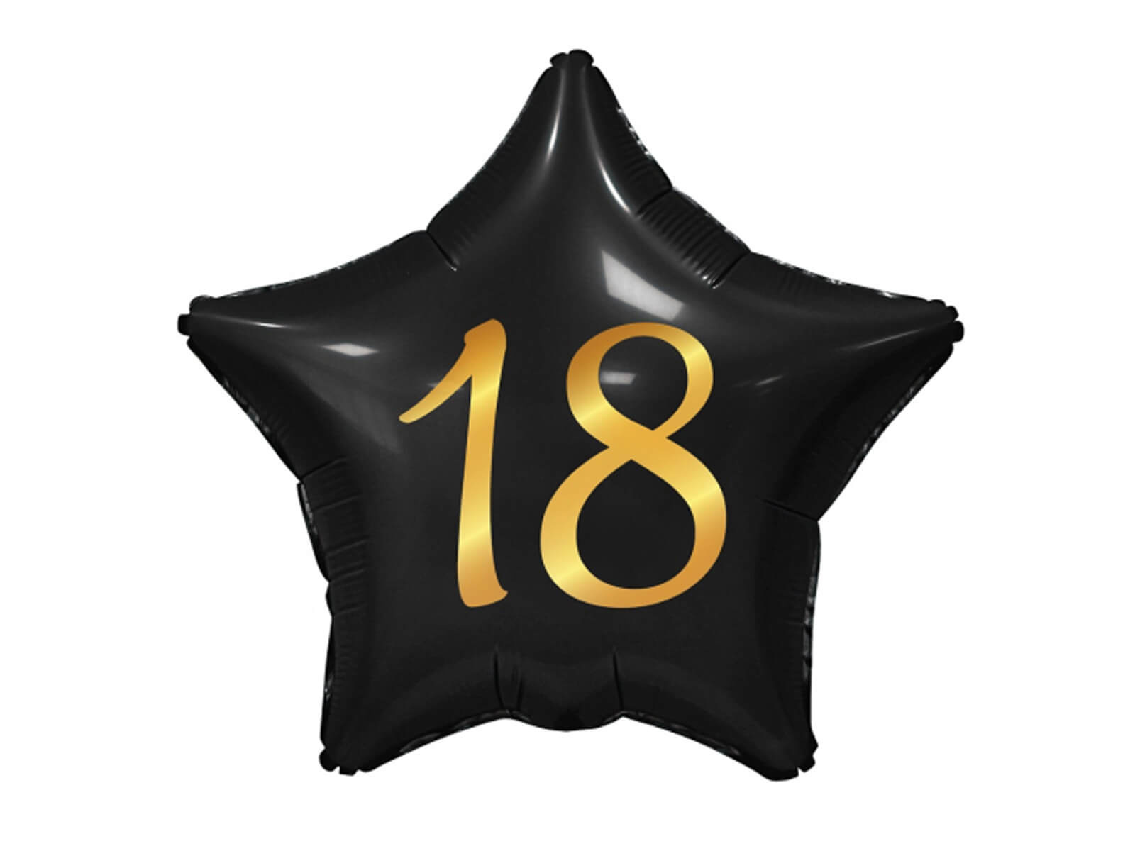 Balon din folie pentru a 18-a aniversare stea neagră - 48 cm - 1 buc.