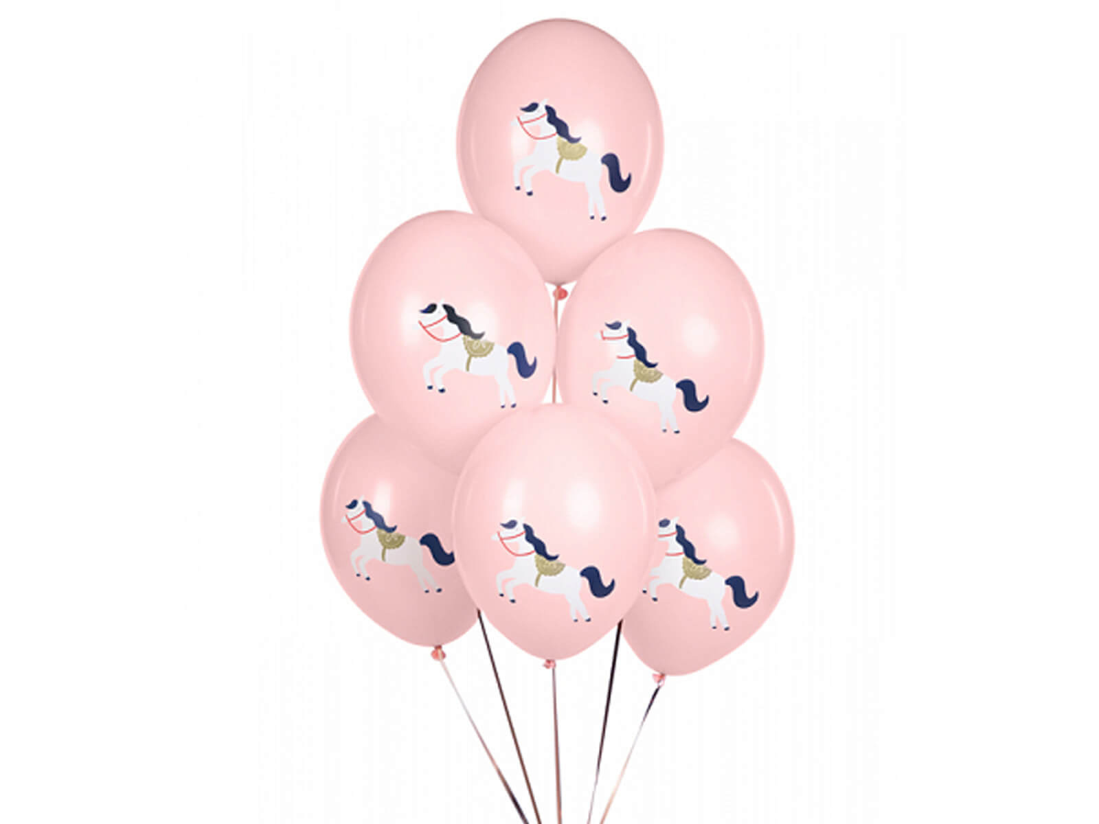 Baloane din latex cu cal - roz deschis cu imprimare (30 cm, 6 buc.)