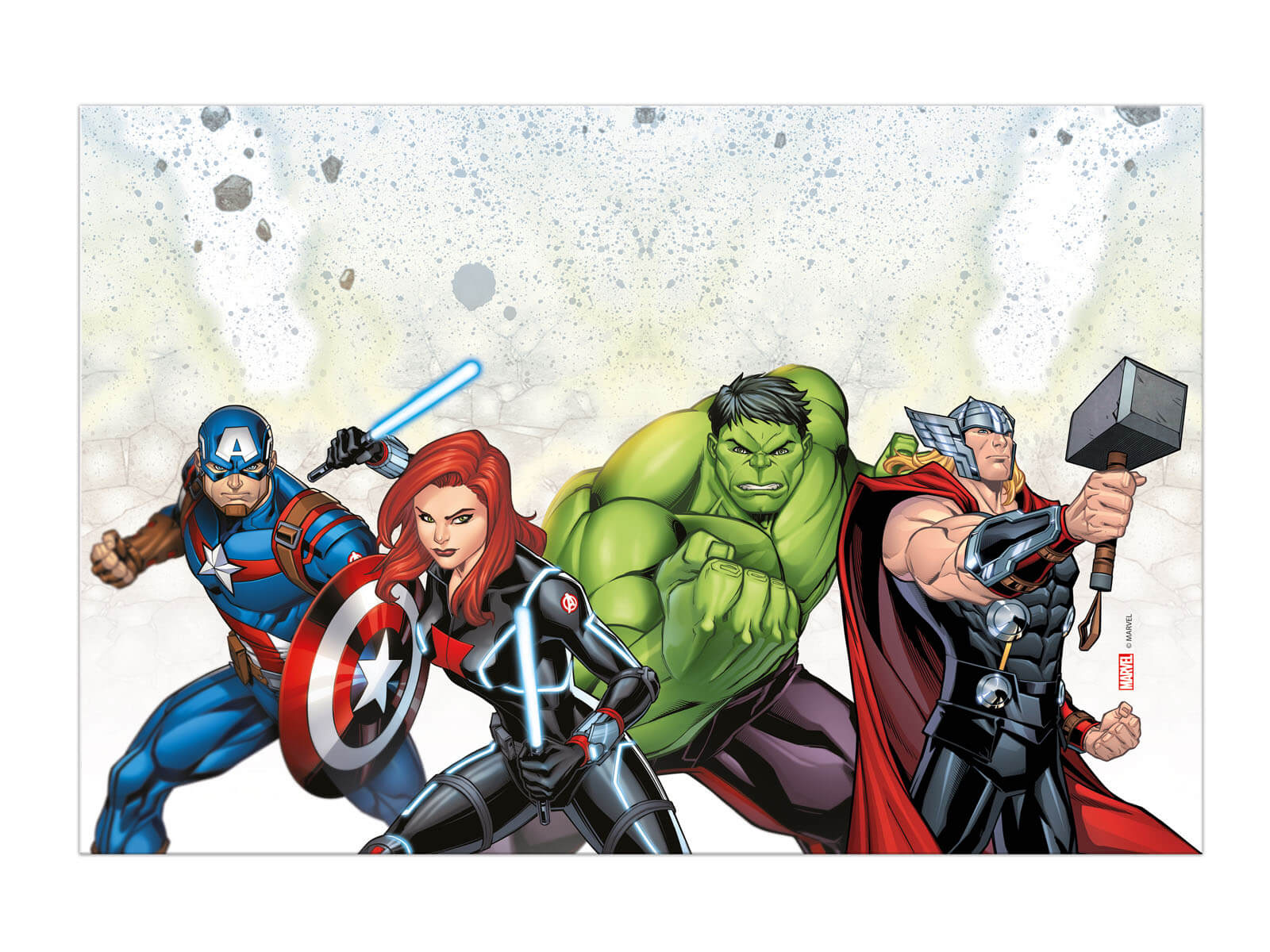 Pânză de masă aniversară Avengers - perfectă pentru o petrecere de neuitat