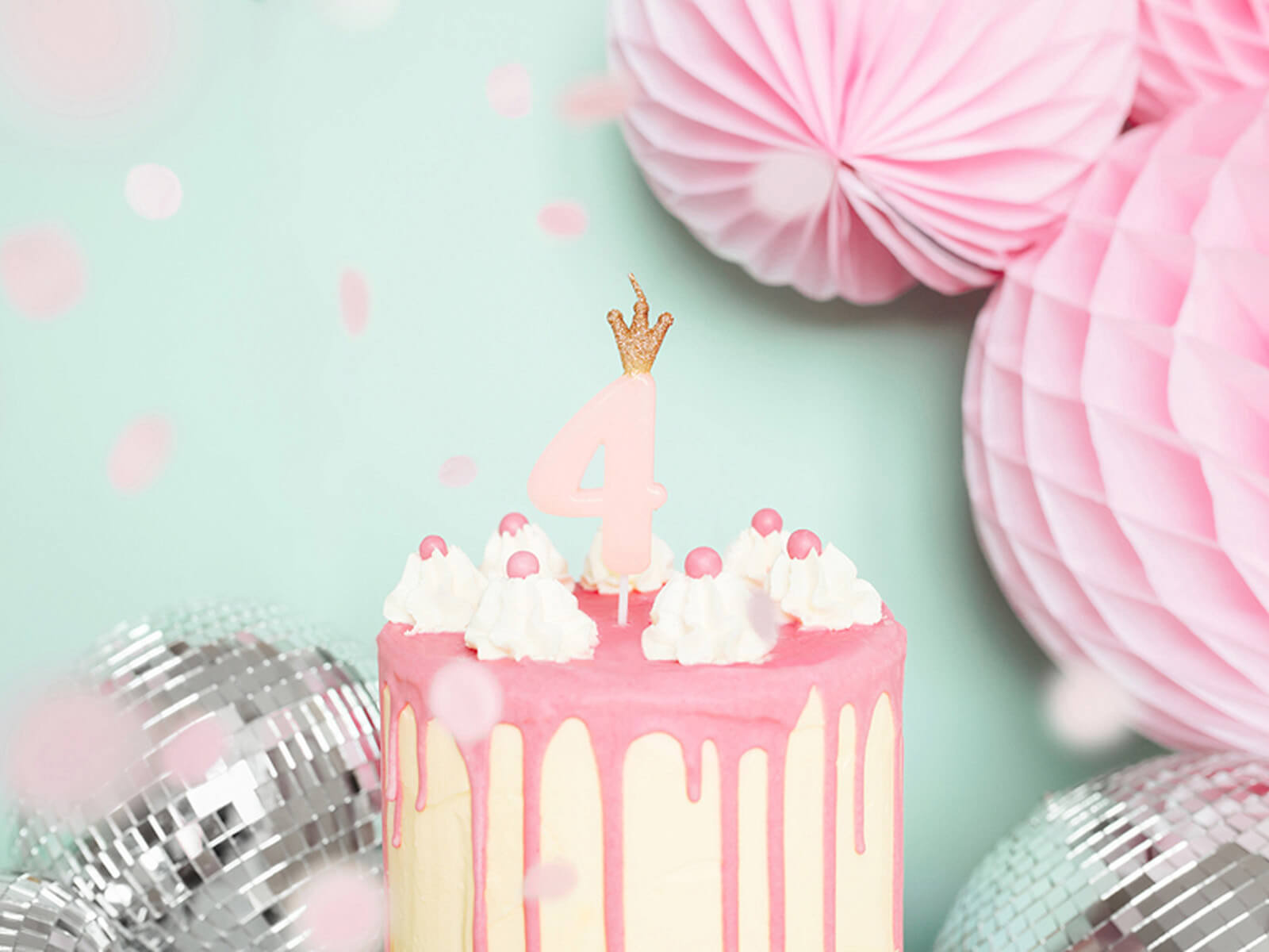 Numărul patru lumânare roz deschis cu coroană - 4 - 1 buc.