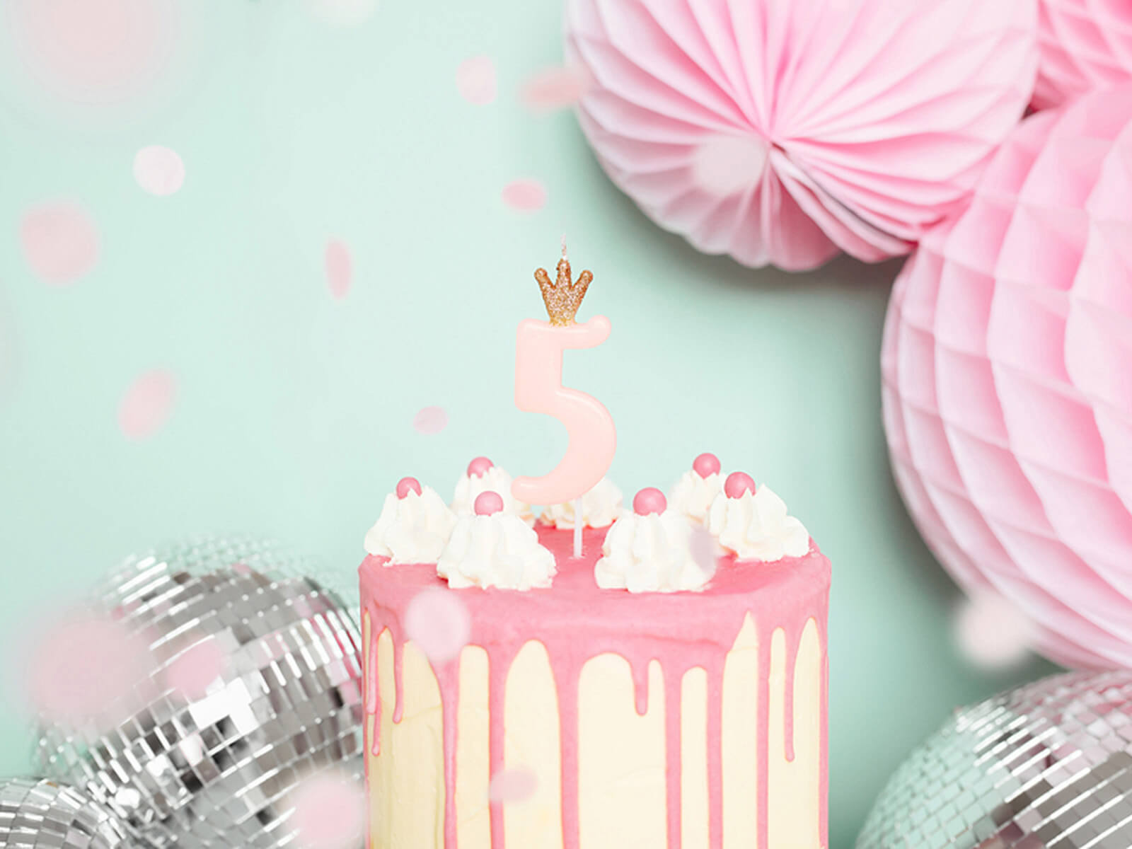 Lumânare cu numărul cinci roz cu coroană - 5 - 1 buc.